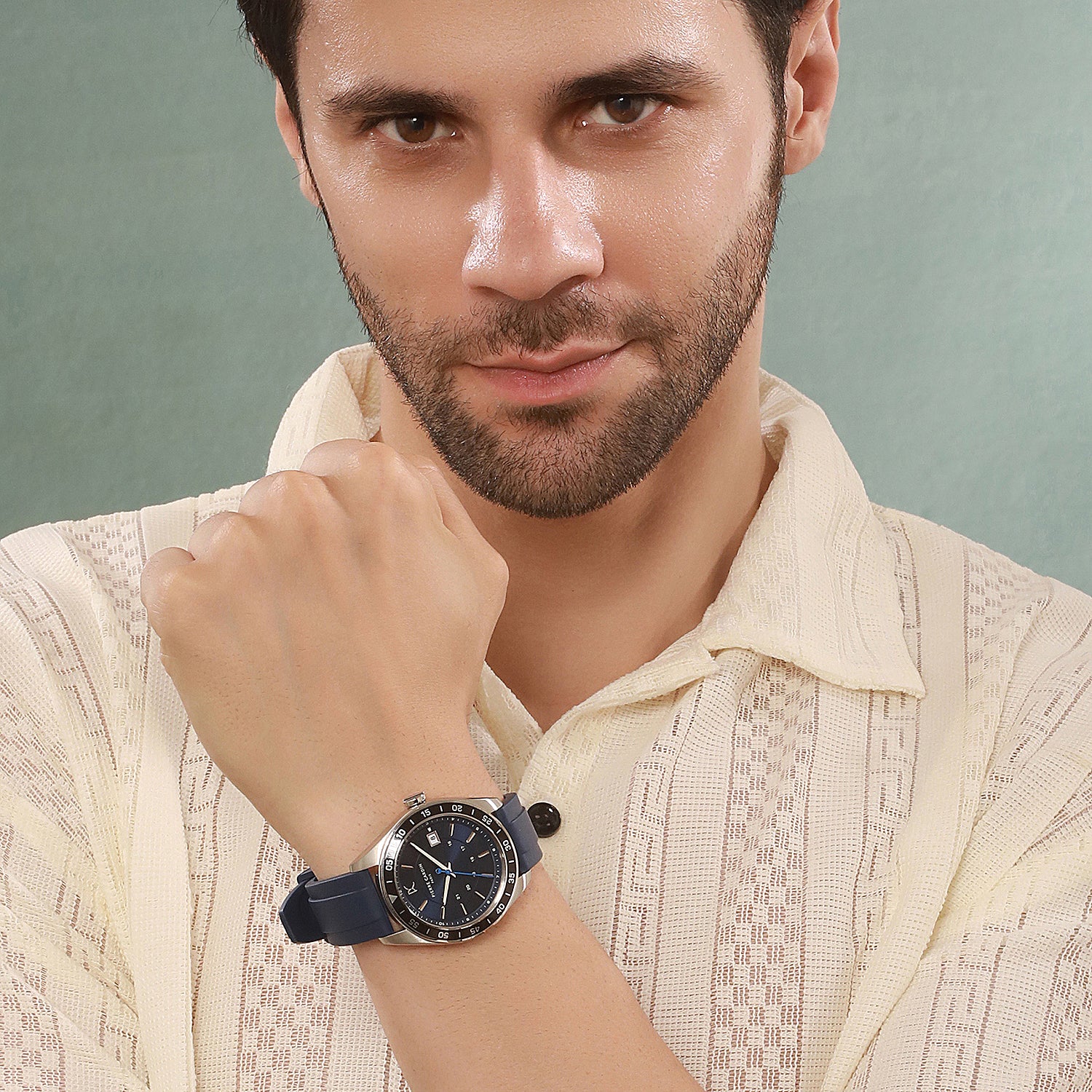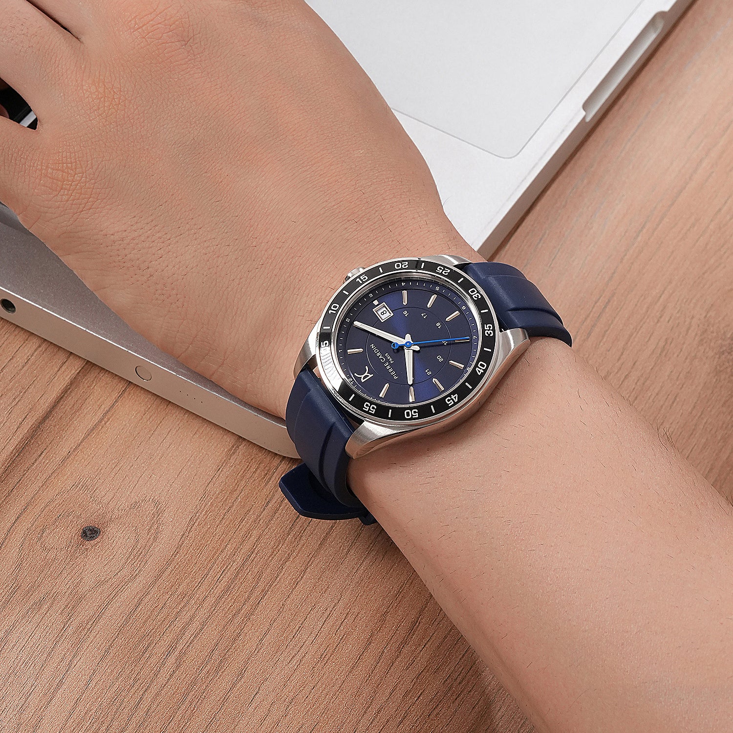 Nation Verre Men’s 42mm Sport Watch - Blue Dial, Black Bezel with Blue Silicone Strap