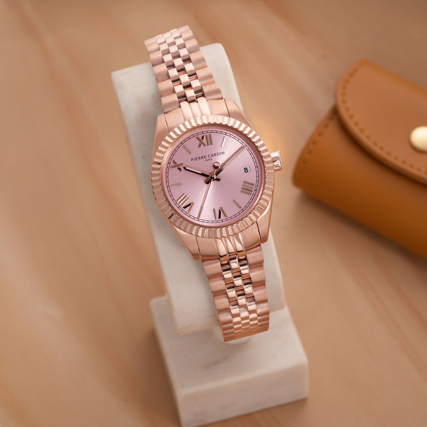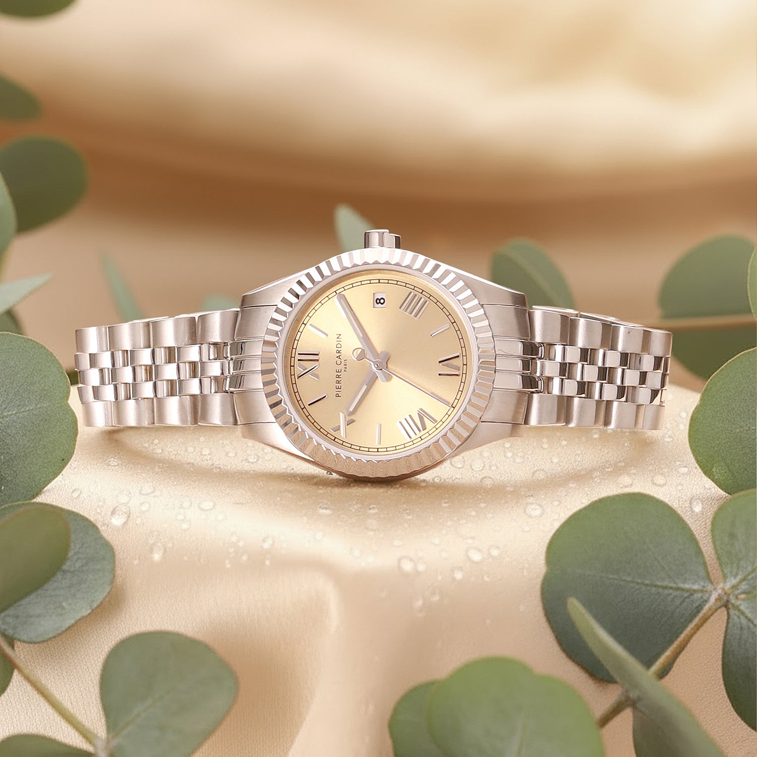 Opera Timbre is an evergreen ladies’ favourite, returning this season in fresh, feminine variations. The collection is defined by its elegant fluted bezel, classic Roman numerals and softly rounded case, paired with a refined multi-link bracelet that feels like jewellery on the wrist. Clean dials with a discreet date window keep the design timeless and easy to read, making each watch a natural choice for both everyday wear and more dressed-up occasions. Season after season, Opera Timbre remains a signature Pierre Cardin look for women who love classic style with a confident, modern touch.