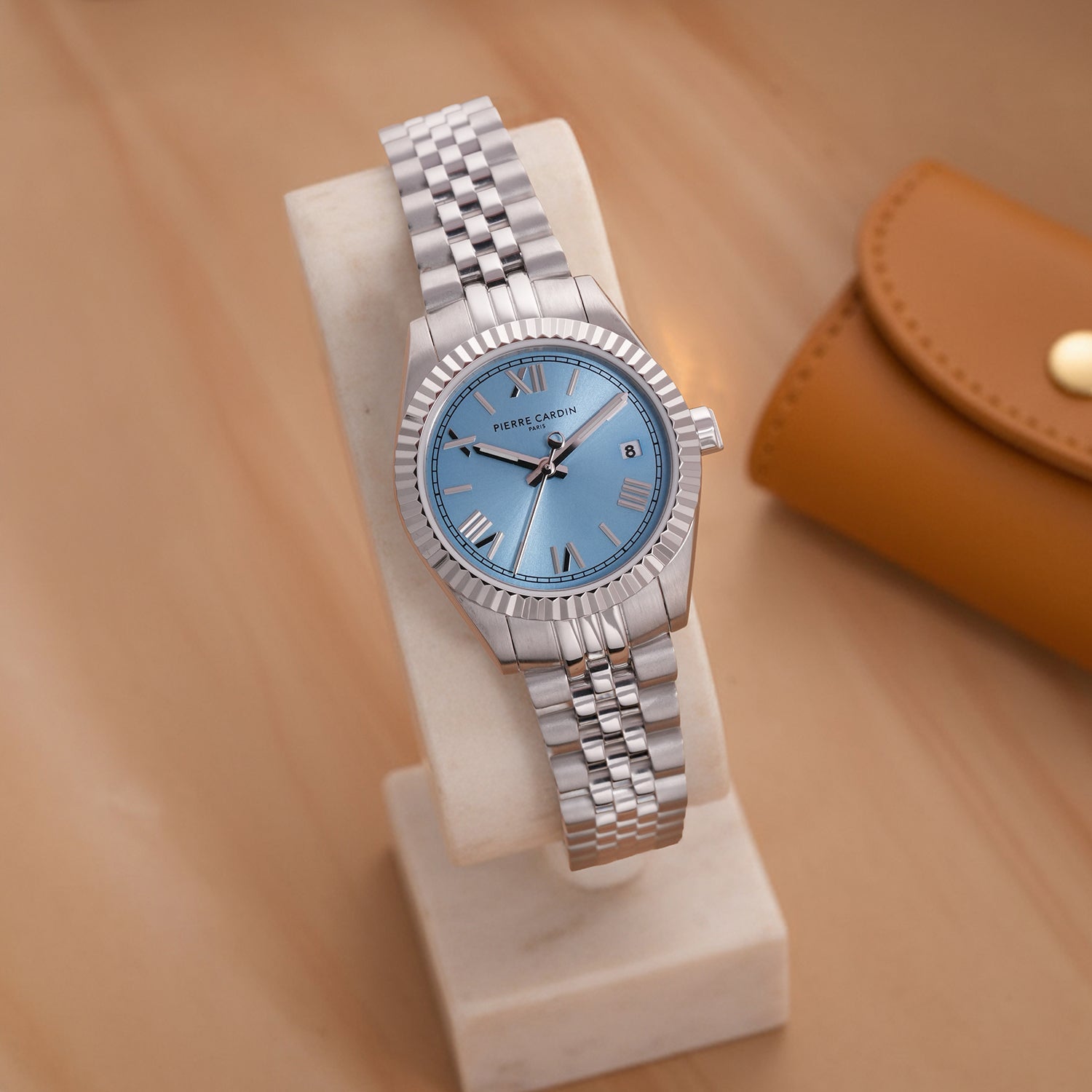 Opéra Timbre Lady 28mm - Stainless Steel Silver with Stainless Steel Silver Strap offers a distinct design identity and refined detailing tailored for its signature look. This 28mm timepiece features a Milky blue dial powered by a Quartz movement from Japan. Encased in Stainless Steel Silver with a Stainless Steel Silver Strap, it blends durability with refined elegance. Perfect for those who appreciate craftsmanship and everyday versatility, this watch is a modern statement piece that balances functionality and timeless appeal.