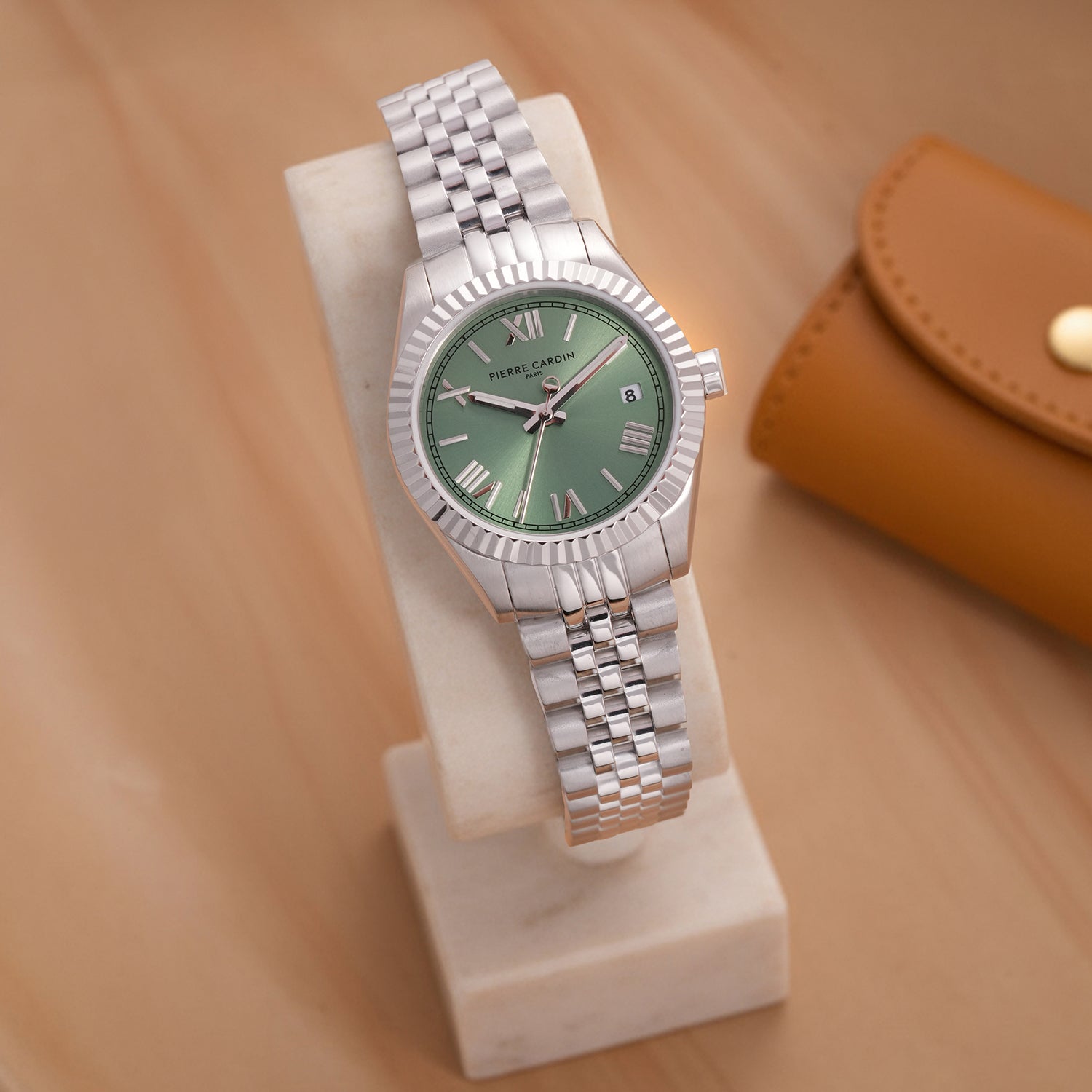 Opéra Timbre Lady 28mm - Stainless Steel Silver with Stainless Steel Silver Strap offers a distinct design identity and refined detailing tailored for its signature look. This 28mm timepiece features a Kashmir green dial powered by a Quartz movement from Japan. Encased in Stainless Steel Silver with a Stainless Steel Silver Strap, it blends durability with refined elegance. Perfect for those who appreciate craftsmanship and everyday versatility, this watch is a modern statement piece that balances functionality and timeless appeal.