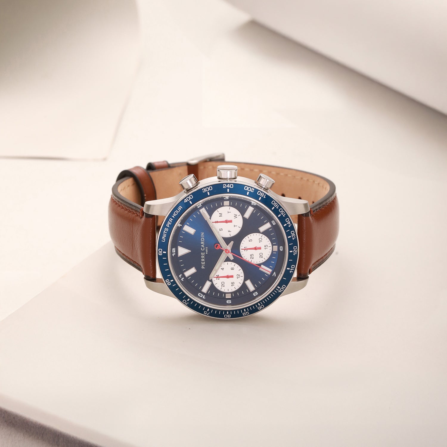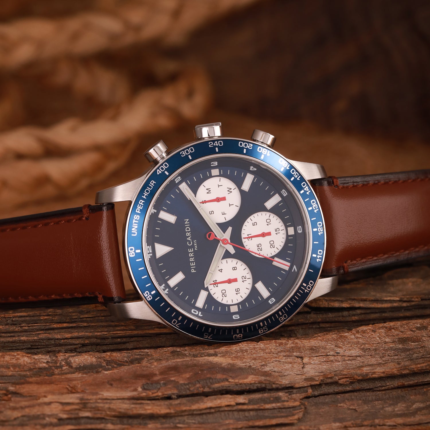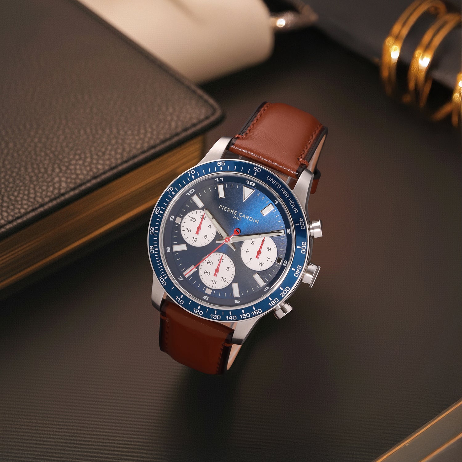 Discover the style and precision of the Velocity Mulitdrive Men's watch. This 43mm timepiece features a Dark blue /Silver white dial powered by a Quartz movement from Japan. Encased in Stainless steel with a Brown Leather Strap, it blends durability with refined elegance. Perfect for those who appreciate craftsmanship and everyday versatility, this watch is a modern statement piece that balances functionality and timeless appeal.