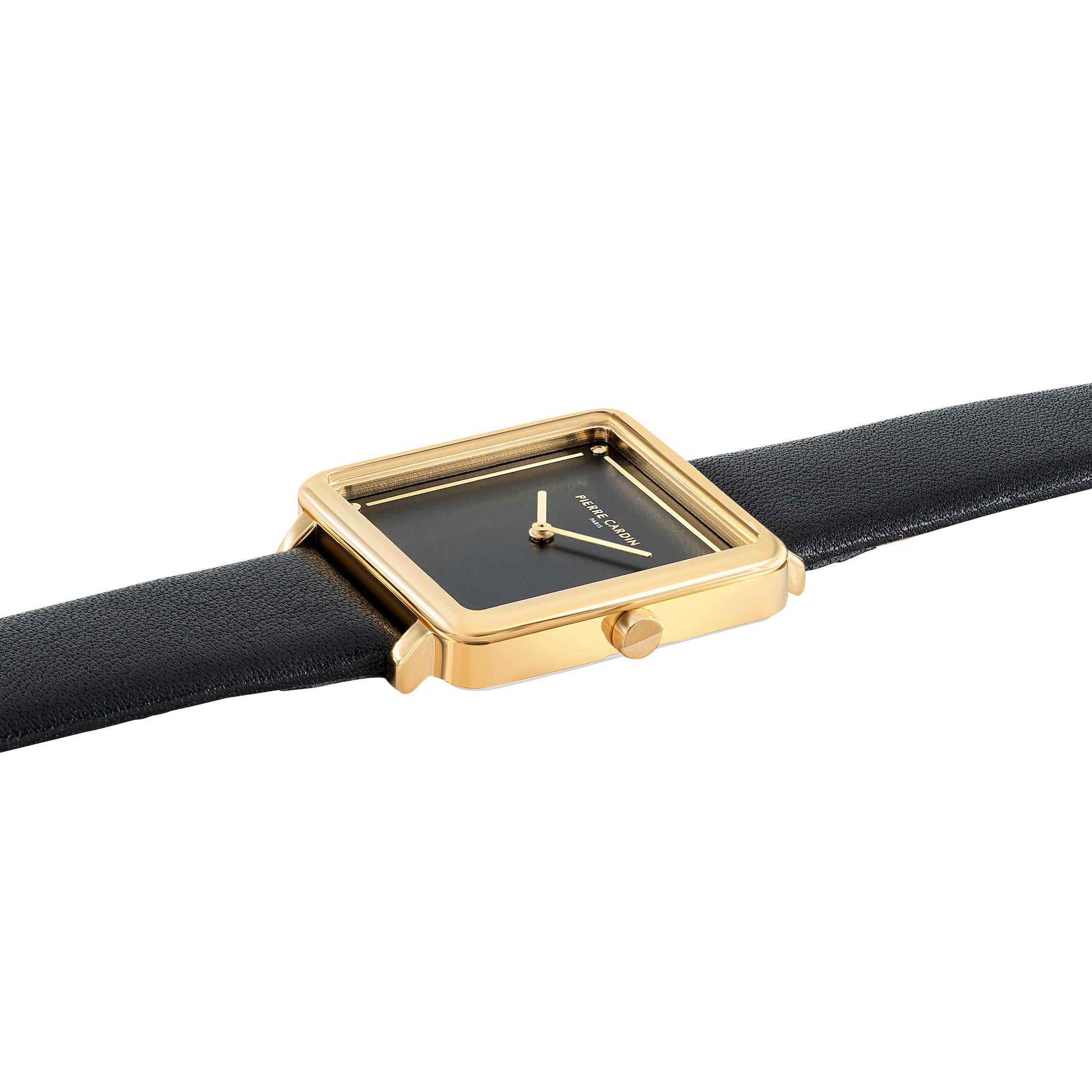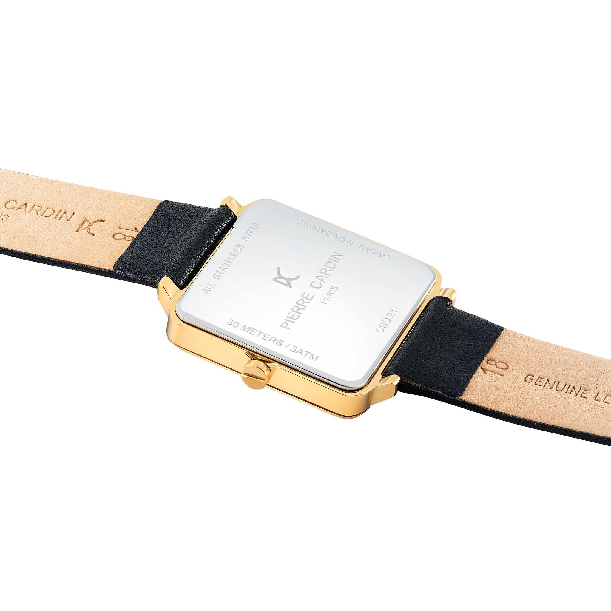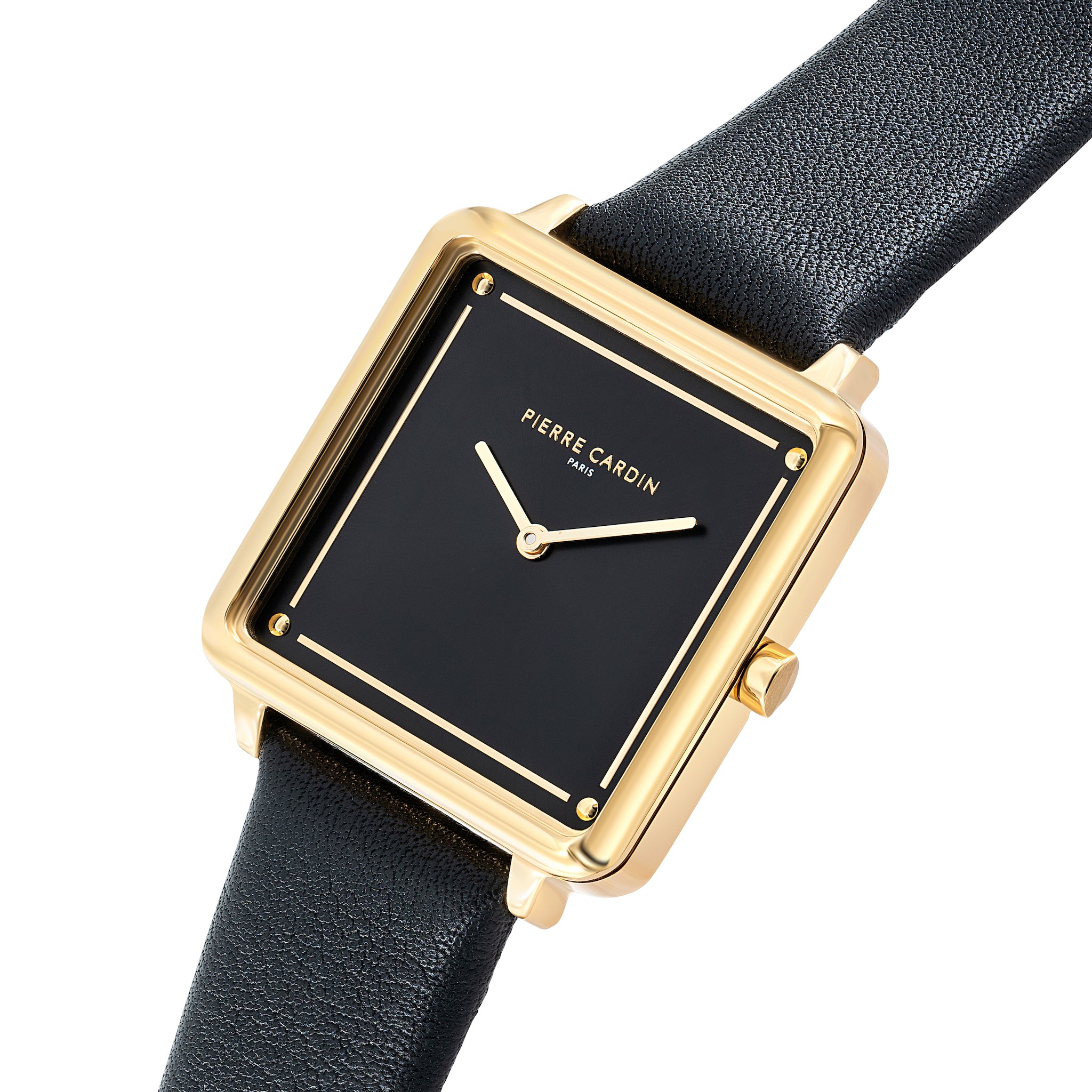 The Vendôme gold watch with black strap is a sleek and stylish timepiece. The square case and minimalist design give it a modern and sophisticated look, making it a great choice for both casual and formal occasions. The square shape of the case is unique and adds an interesting twist to the classic round watch shape.