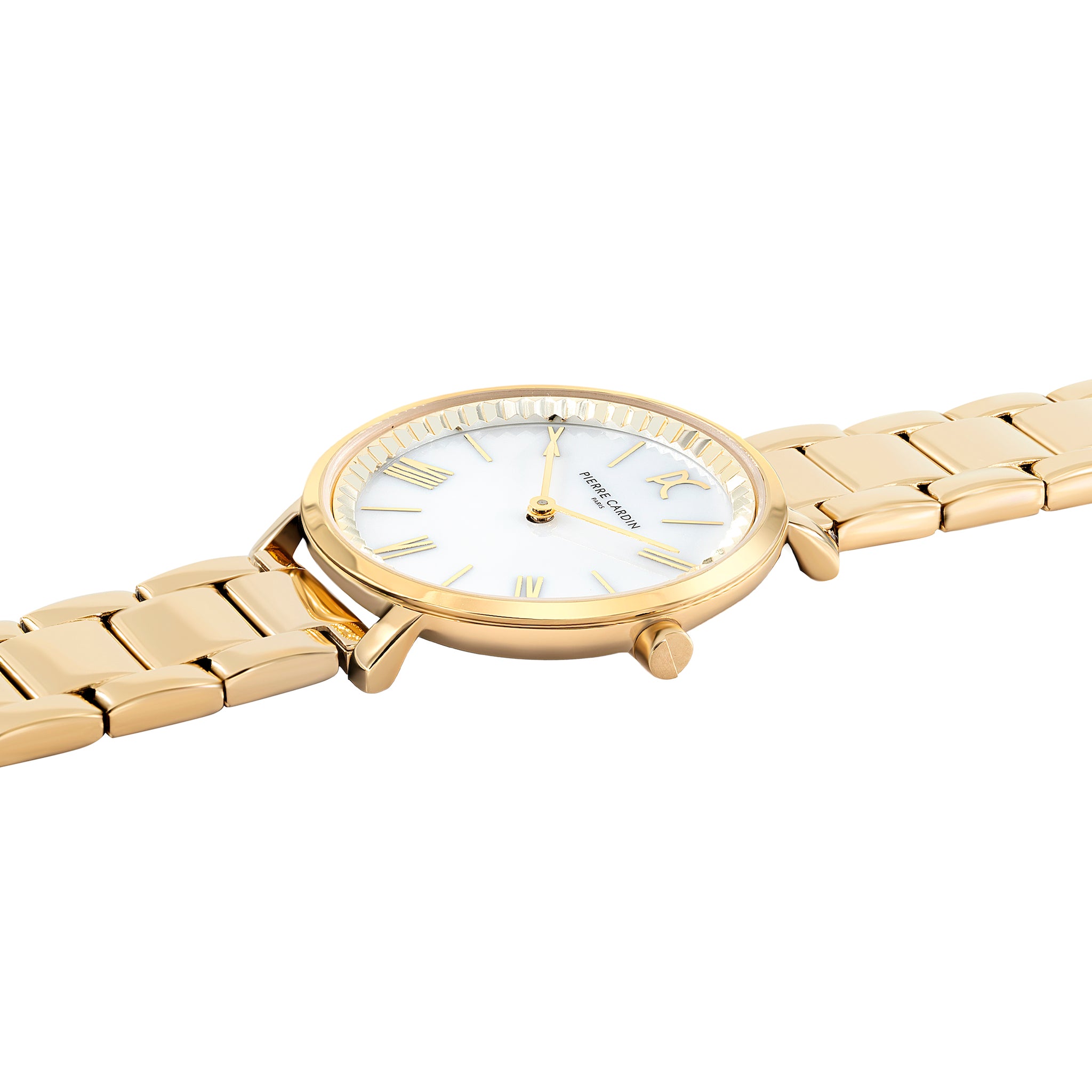 Brochant Mother of Pearl Gold Watch with Metal Link Strap