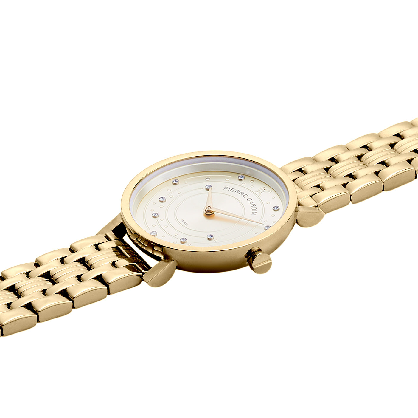 Canal St Martin Circles Gold Watch with Crystals and Champagne Dial