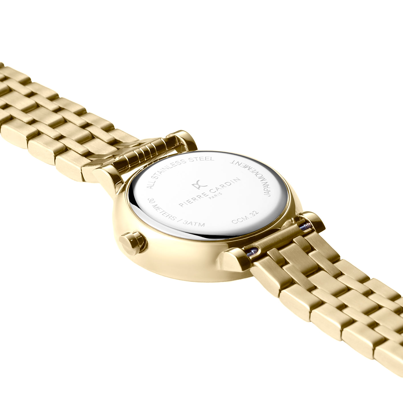 Radiant and mesmerising, the Canal St. Martin gold stainless steel metal link watch is a bestselling collection and true statement piece. Just like the soft bubbles floating to the top of crisp, golden champagne, the sparkling gradient dial has an unmatched opulence. The flawless, polished gold stainless steel watch case lends a delicate and matching stainless steel metal link watch strap adds an additional hint of classic luxury.