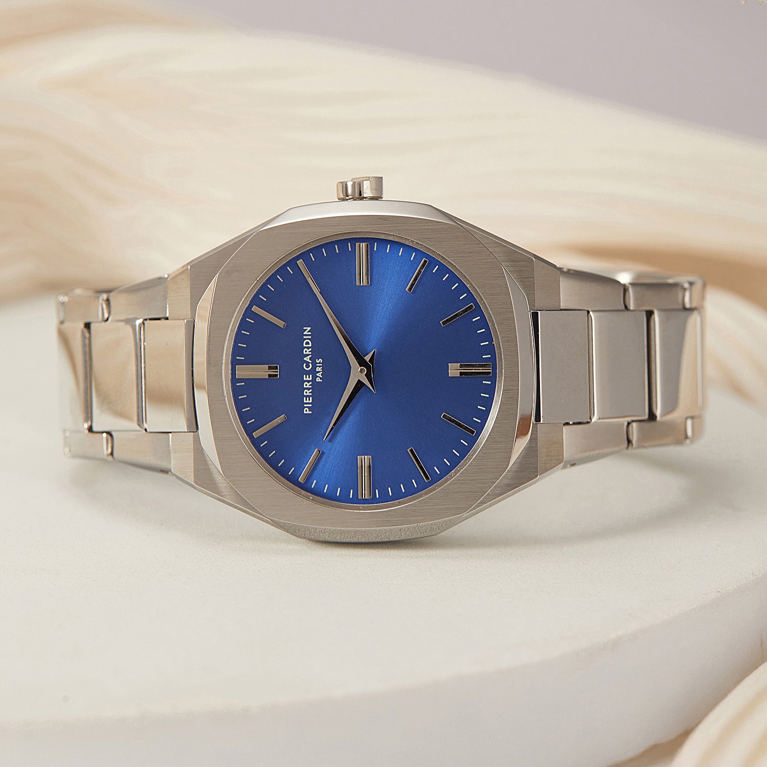 The Élysée Chrysanthème collection by Pierre Cardin showcases timeless elegance with a touch of modern sophistication. Featuring a sleek stainless steel case, a captivating blue dial, and a matching stainless steel band, this timepiece is both versatile and stylish. The minimalist two-hand movement enhances its clean design, making it the perfect accessory for any occasion. Crafted with precision and Parisian charm, the Élysée Chrysanthème watch is a stunning addition to any collection.