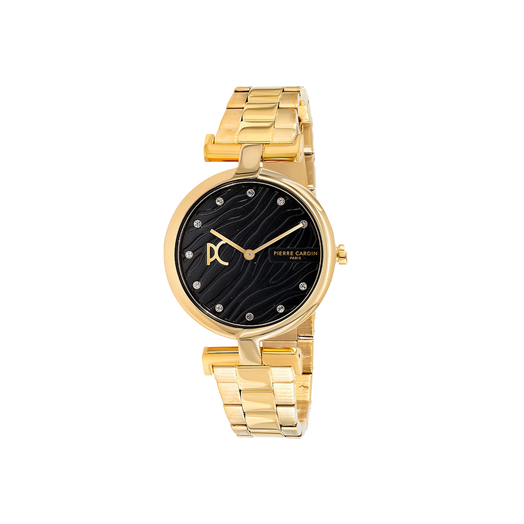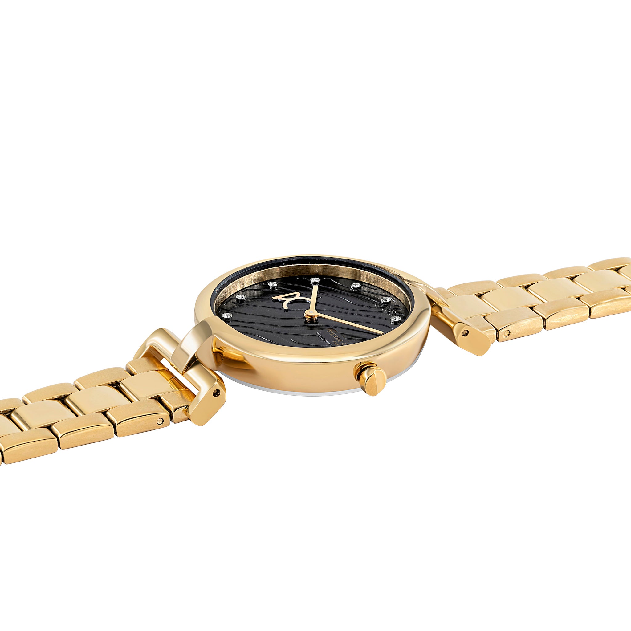 Madeleine Patterned Black Dial Gold Metal Link Band Watch