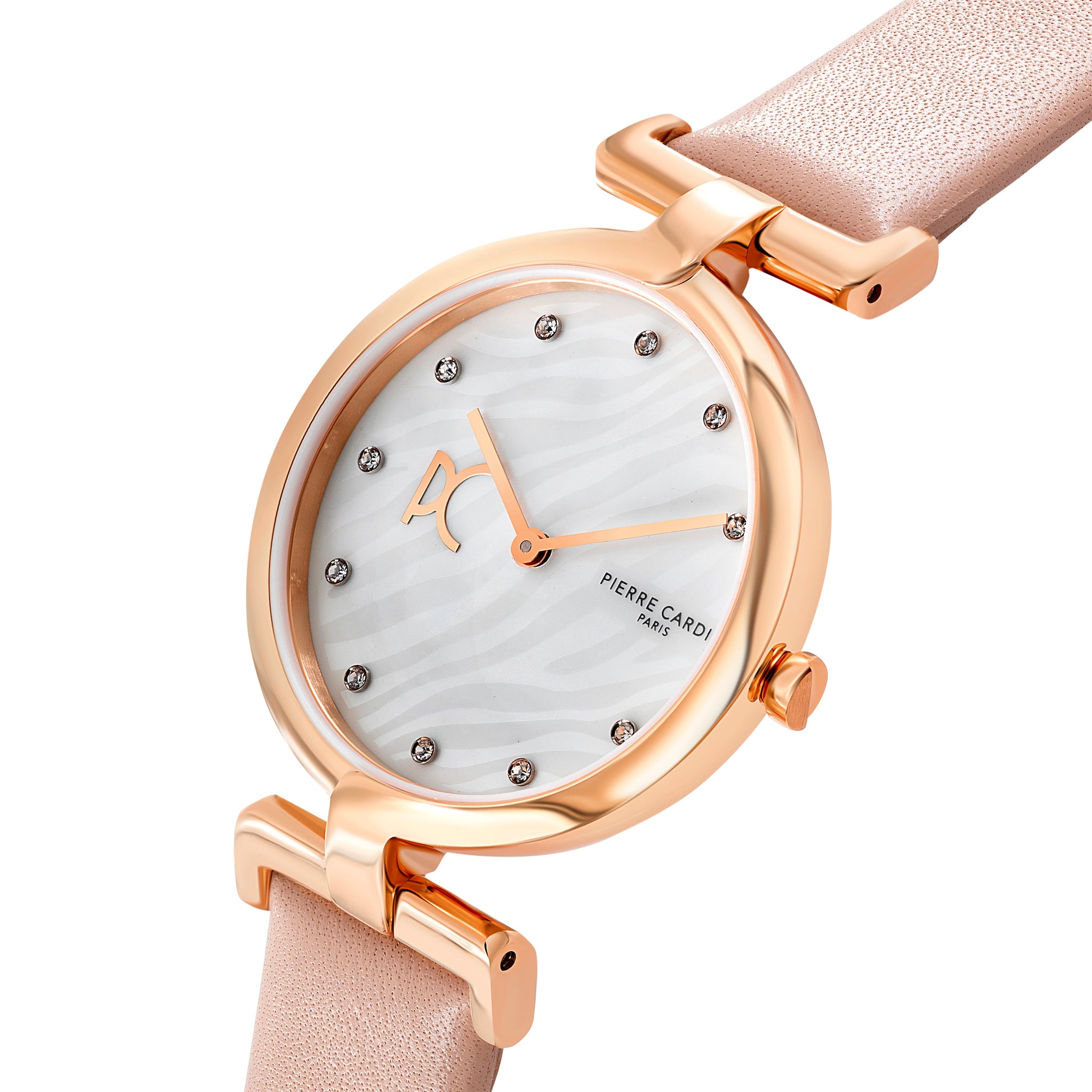 Flawless and radiant the Madeleine patterned dial rose watch with leather strap delivers an unforgettable impact with its wonderful modern design. The elegant leather strap combined with a bold medium-sized dial and subtle fluidic design of the rose gold case renders this watch unforgettable. Featuring patterned dial finished with minimalist watch indices and hands, ensure effortlessly graceful monochrome look.