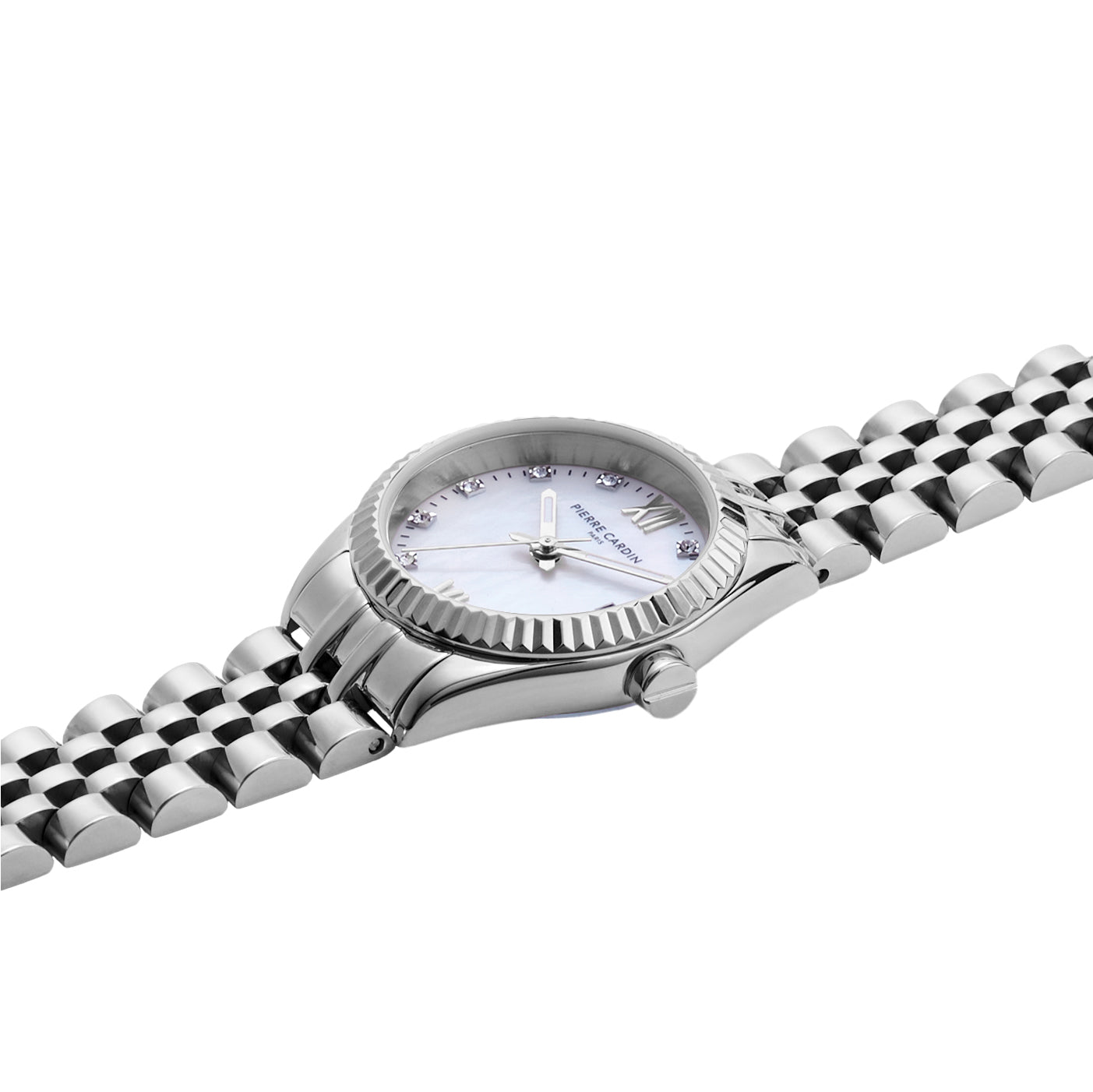 Just like the elegant Opera region of Paris which is known for its theaters, this Pierre Cardin watch is elegant and mesmerising. The fluted bezel adds a touch of luxury, this beautiful watch is made in stainless steel with white mother of pearl dial and Crystals on indexes. The watch also features a date function. The flawless stainless steel watch case lends a delicate and matching stainless steel metal link watch strap adds an additional hint of classic luxury.