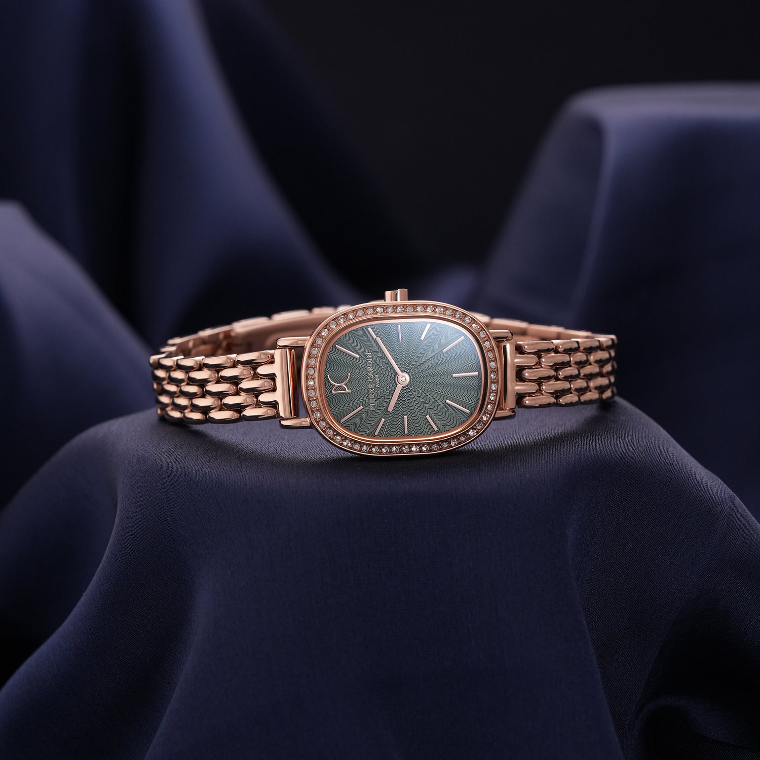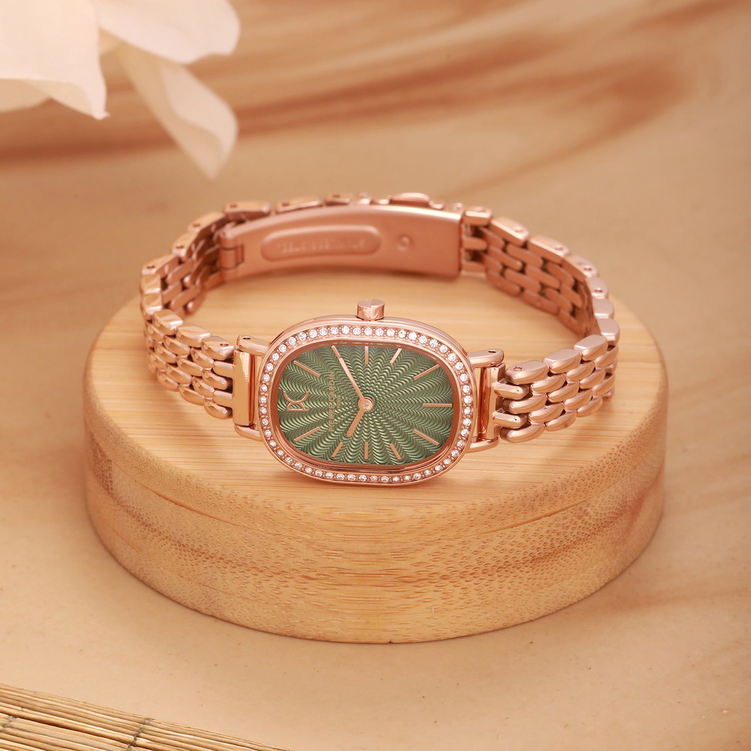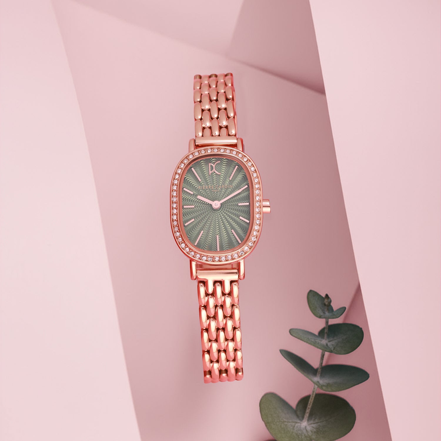 Belle Époque Lady 22mm - Rose Gold with Rose Gold Metal Strap offers a distinct design identity and refined detailing tailored for its signature look. This 22mm timepiece features a Kashmir green  dial powered by a Quartz movement from Japan. Encased in Rose Gold with a Rose Gold Metal Strap, it blends durability with refined elegance. Perfect for those who appreciate craftsmanship and everyday versatility, this watch is a modern statement piece that balances functionality and timeless appeal.