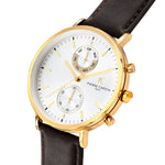 Bonne Nouvelle Multifunction Gold Watch with White Dial and Brown Leather Strap