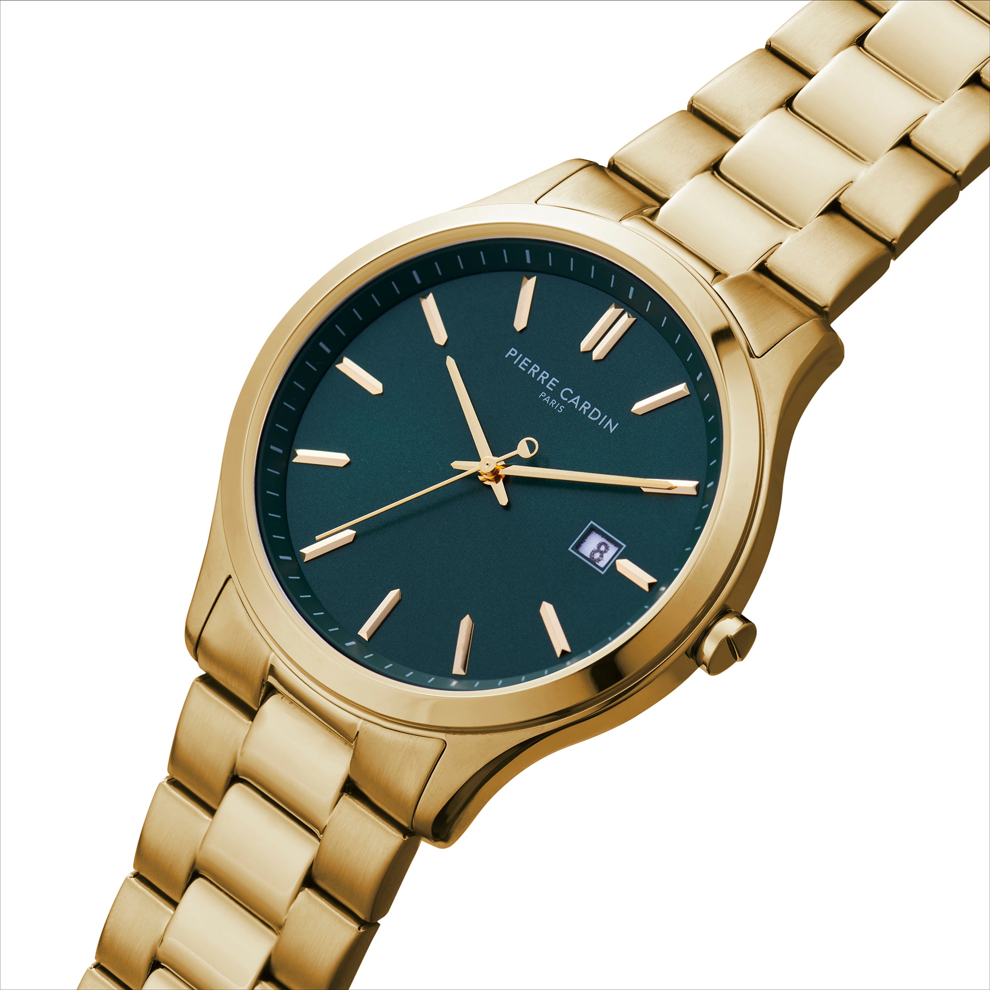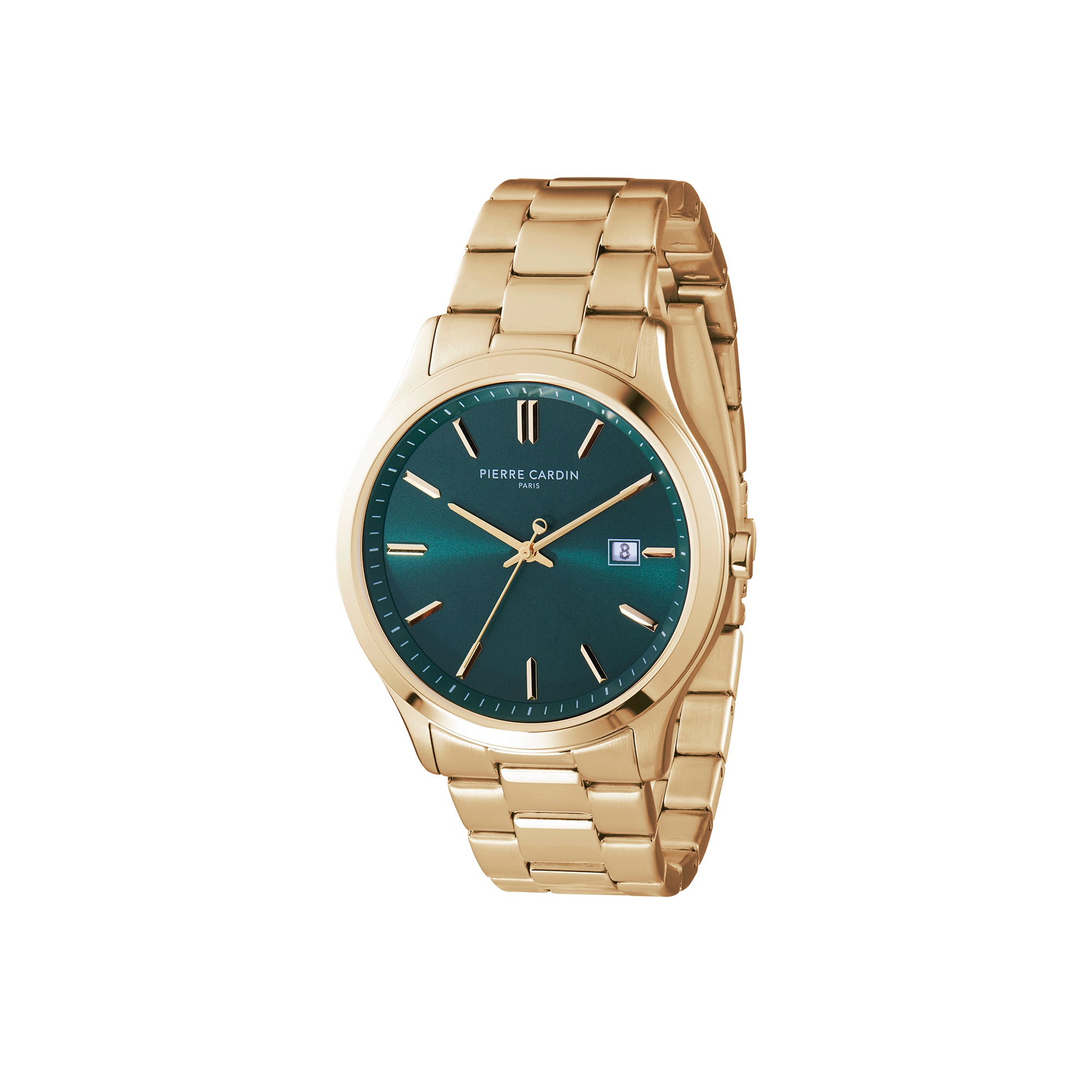 Épinettes Essential Gold Watch with Green Dial and Metal Links Strap
