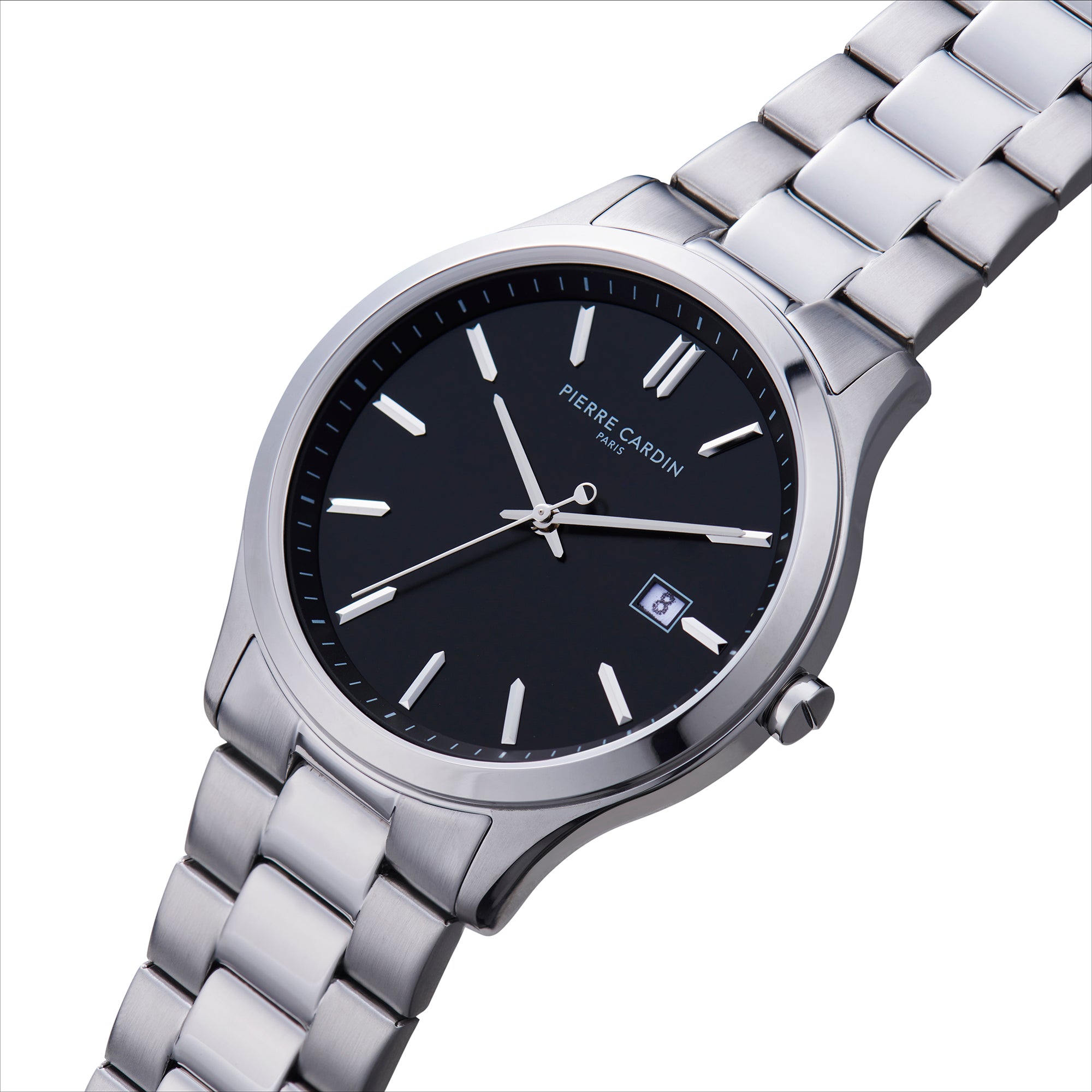 Épinettes Essential Stainless Steel Watch with Black Dial and Metal Links Strap