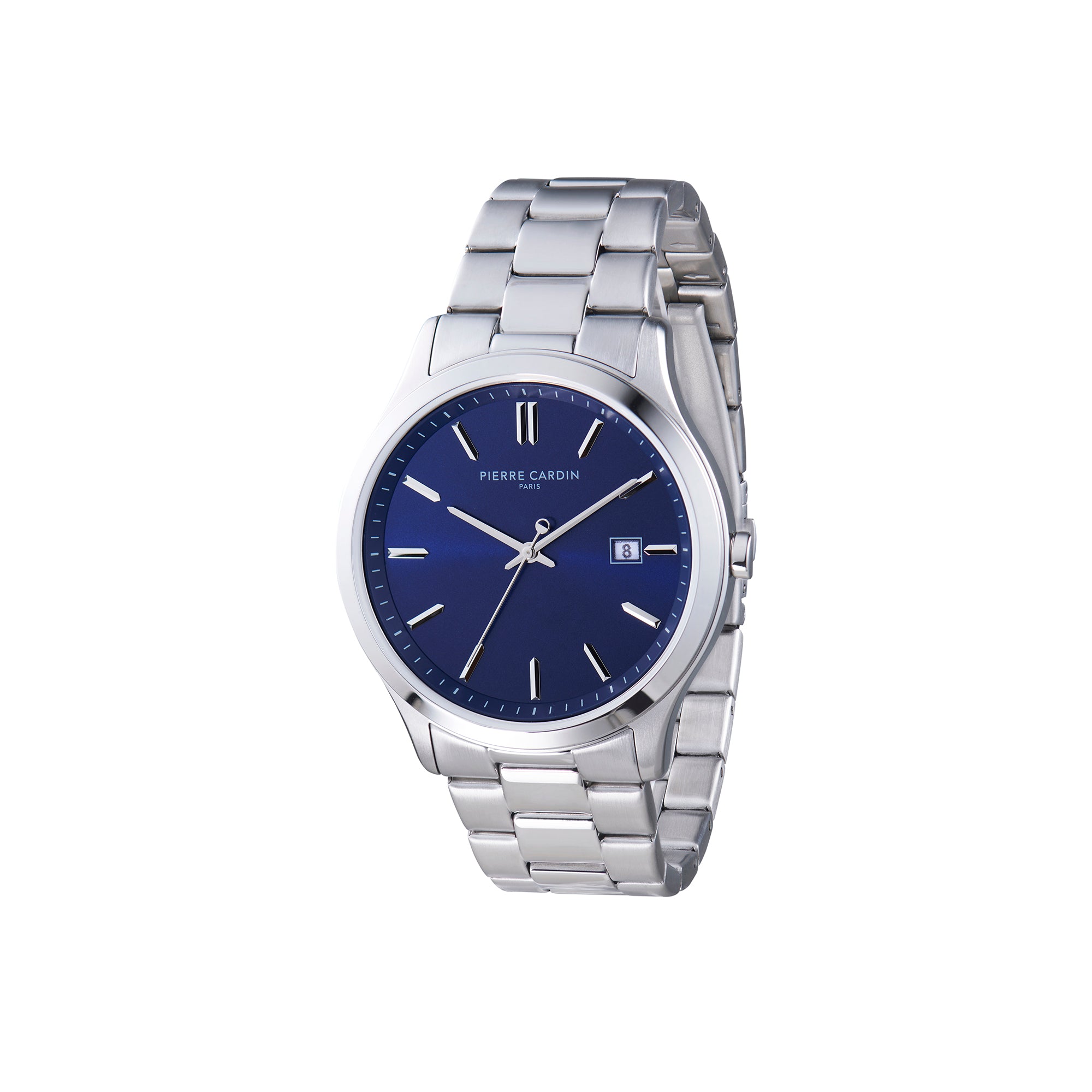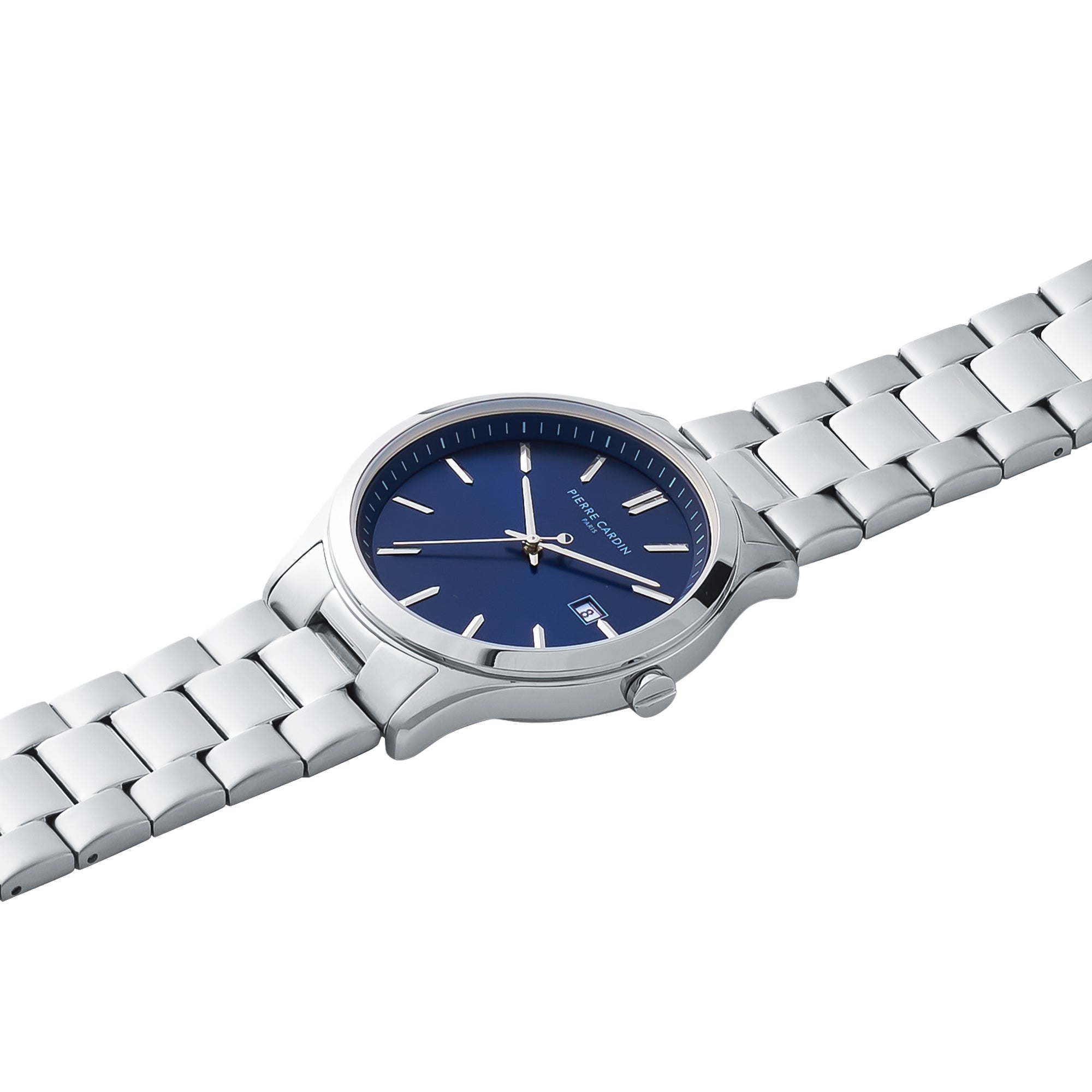 Épinettes Essential Stainless Steel Watch with Blue Dial and Metal Links Strap