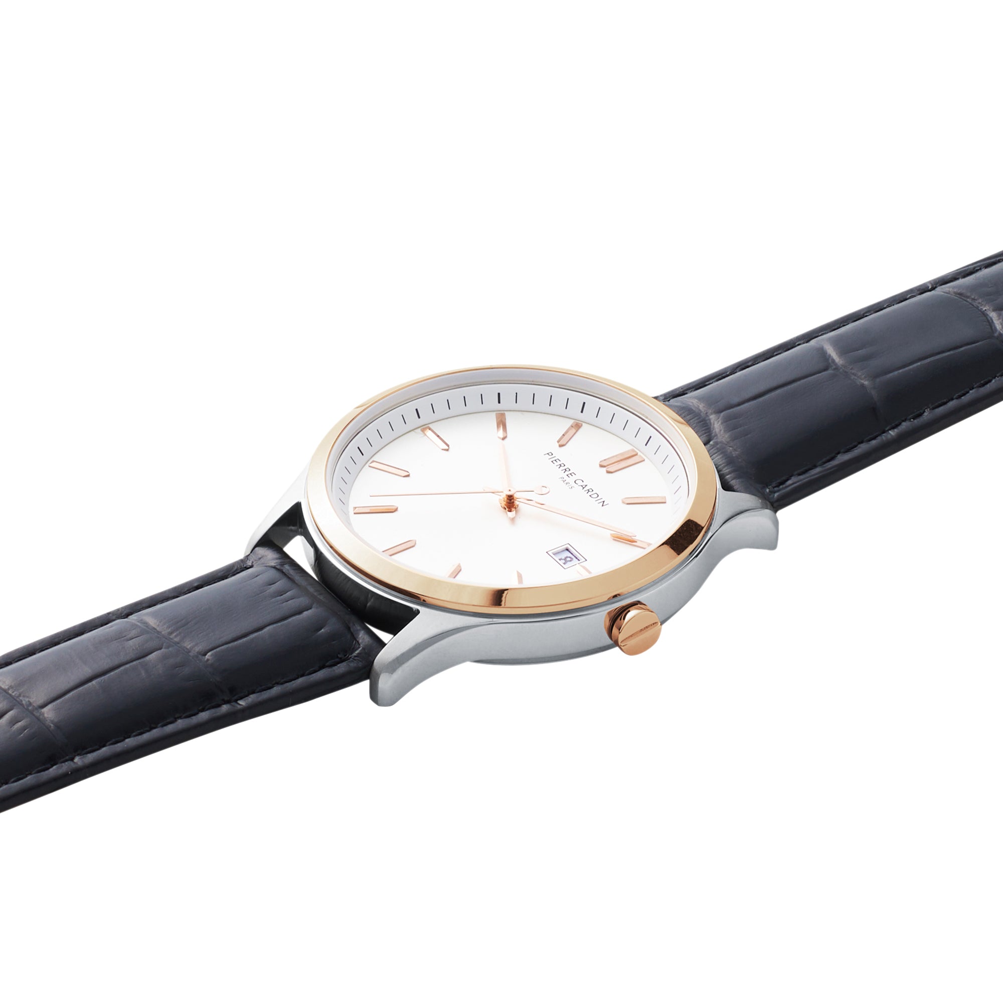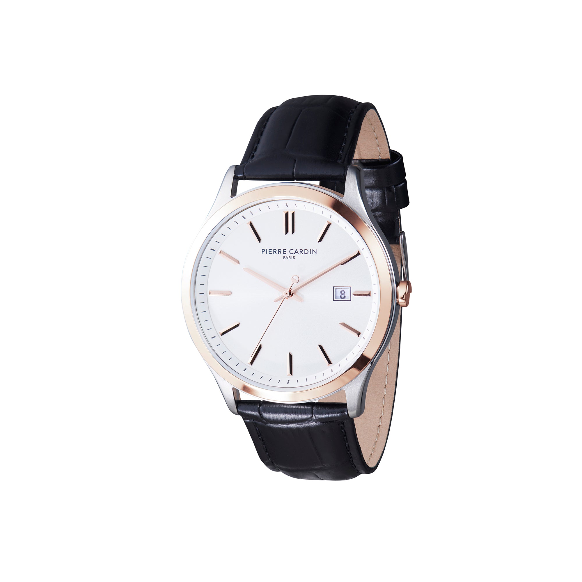 Épinettes Essential Two tone Watch with Silver Dial and Black Leather Strap