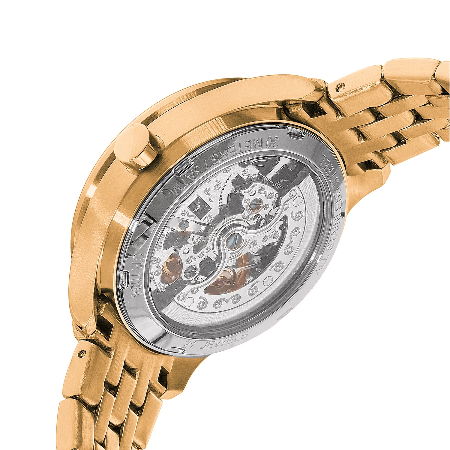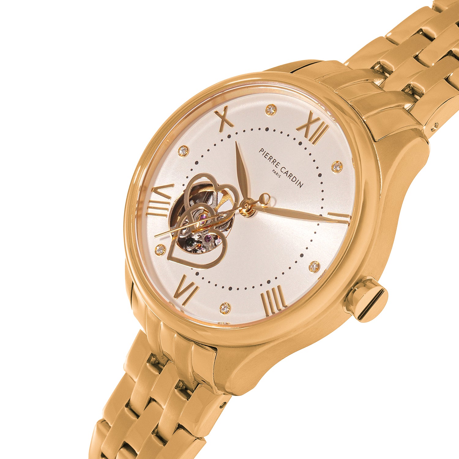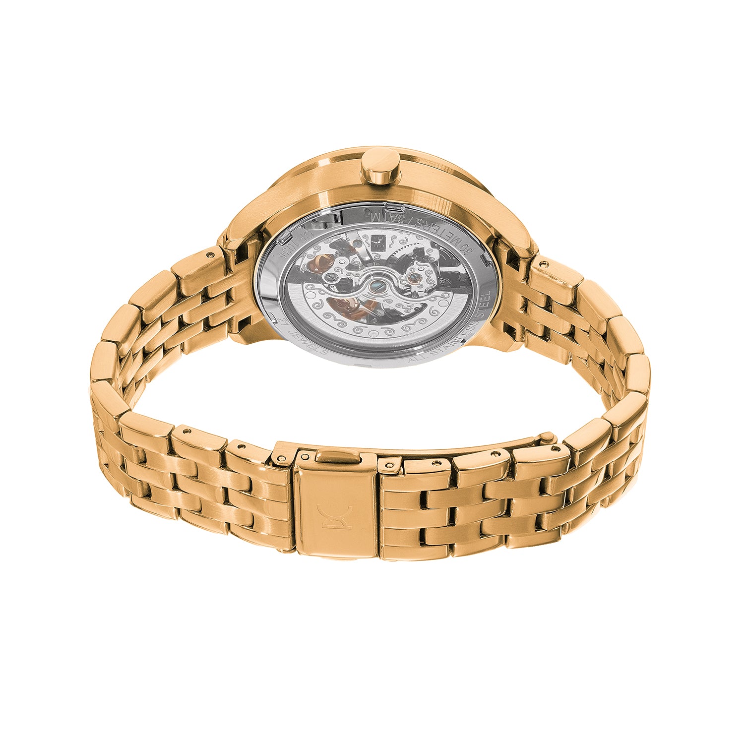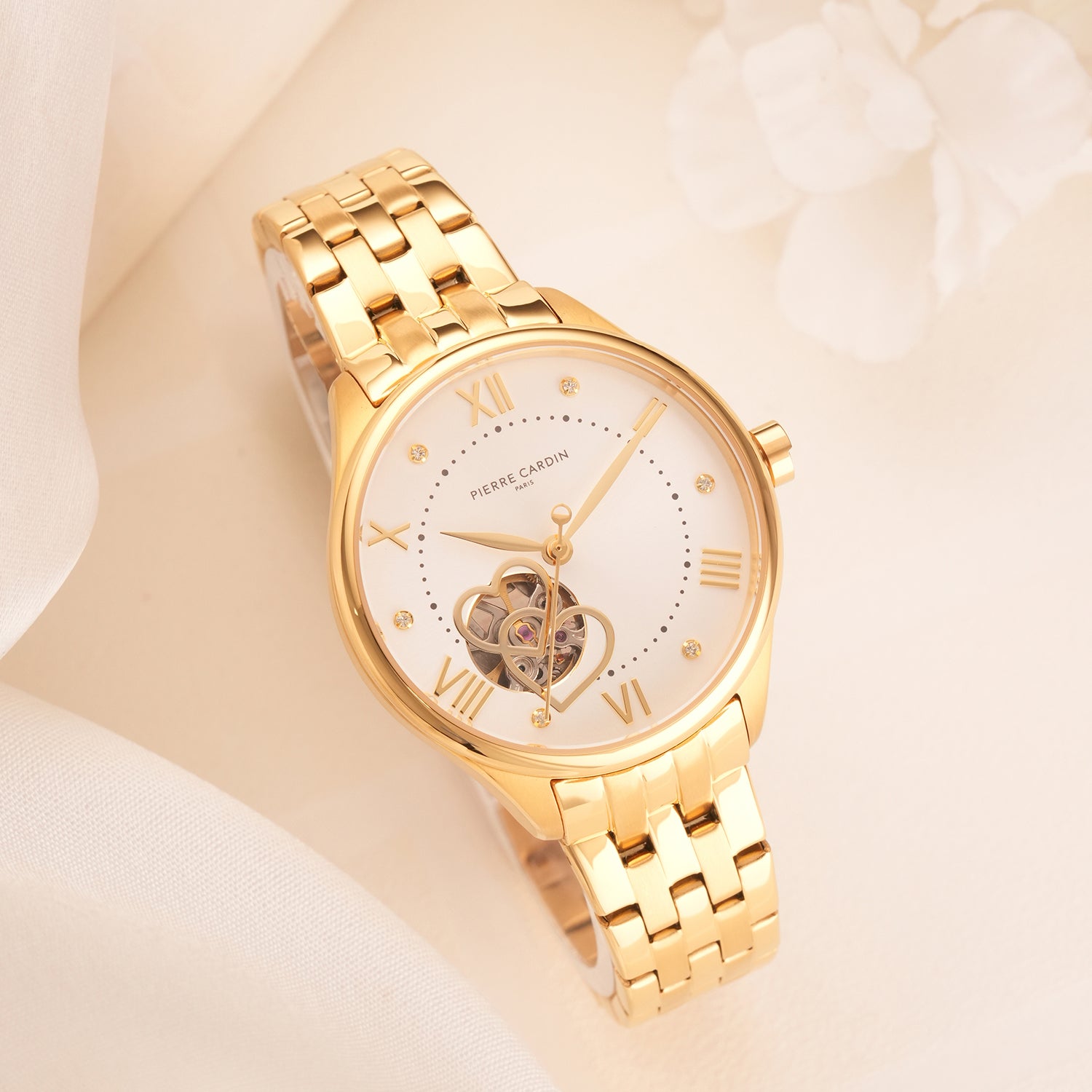 Mécanique Élégante Lady 34.5mm - Gold with Gold Metal Strap offers a distinct design identity and refined detailing tailored for its signature look. This 34.5mm timepiece features a Silver white dial powered by a Mechnical automatic movement from China. Encased in Gold with a Gold Metal Strap, it blends durability with refined elegance. Perfect for those who appreciate craftsmanship and everyday versatility, this watch is a modern statement piece that balances functionality and timeless appeal.