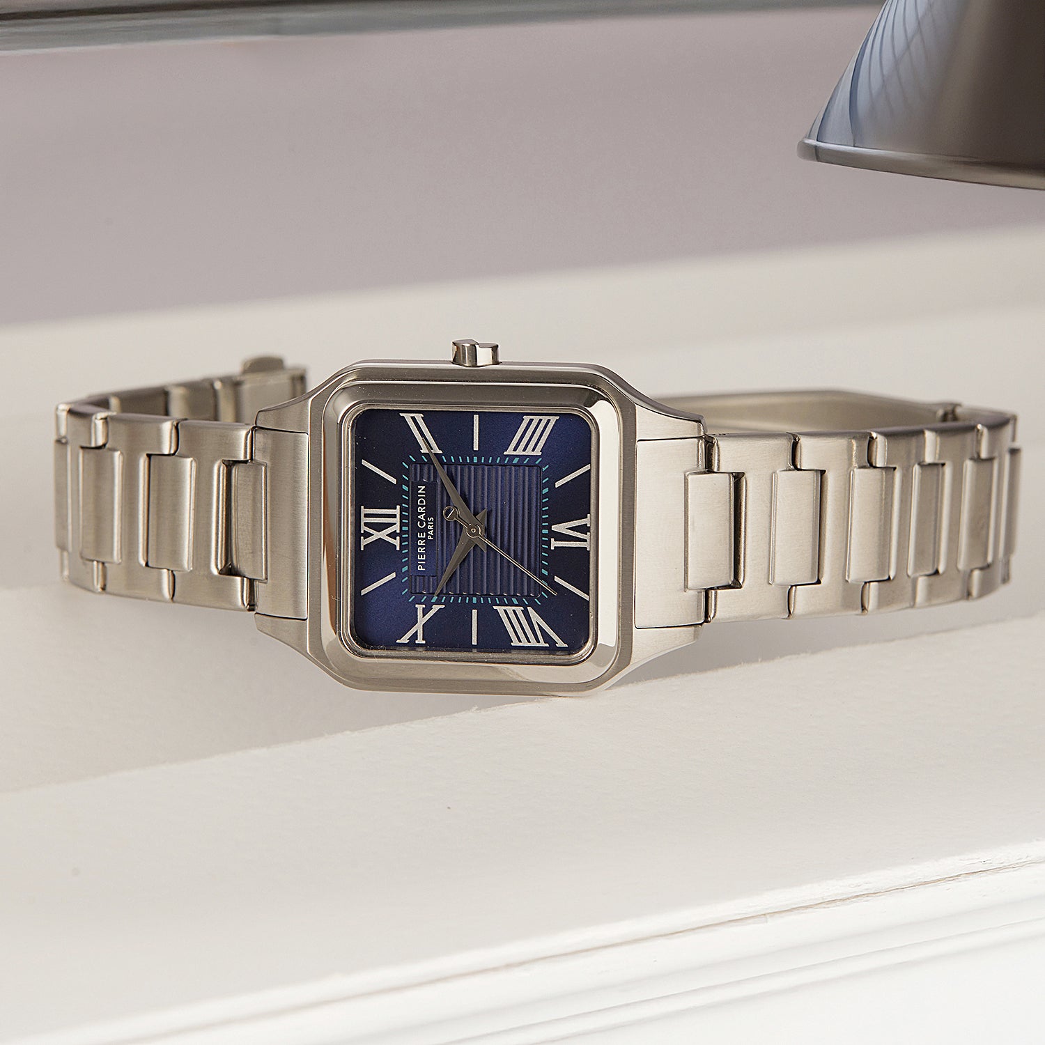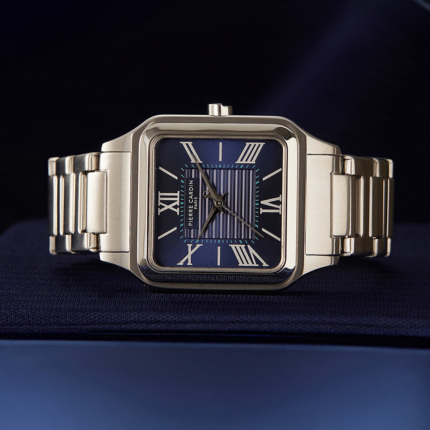 The Ménilmontant Carré men’s watch by Pierre Cardin is a perfect blend of classic elegance and modern style. Featuring a sleek stainless steel silver case and a deep blue dial, this square-shaped timepiece is complemented by a polished silver metal strap. Designed for the discerning gentleman, the Ménilmontant Carré watch is both sophisticated and versatile, ideal for any occasion. With its refined design and impeccable craftsmanship, this watch is a timeless addition to any collection.