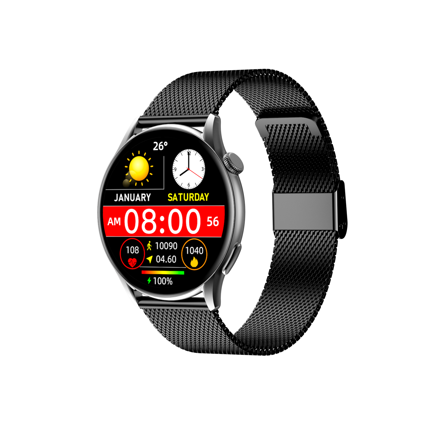 Montre Connectée 1.43" AMOLED Black Case with Black Mesh Band