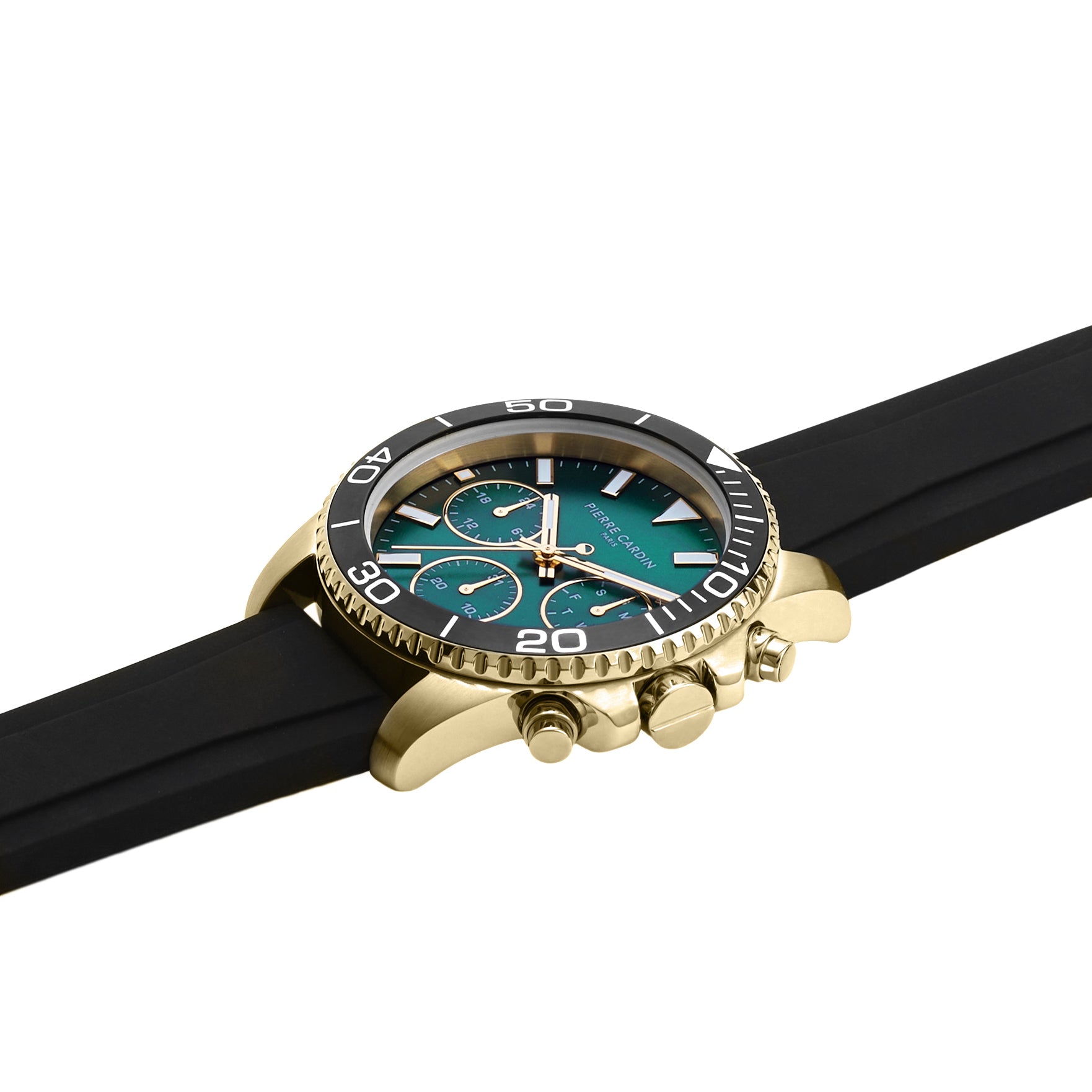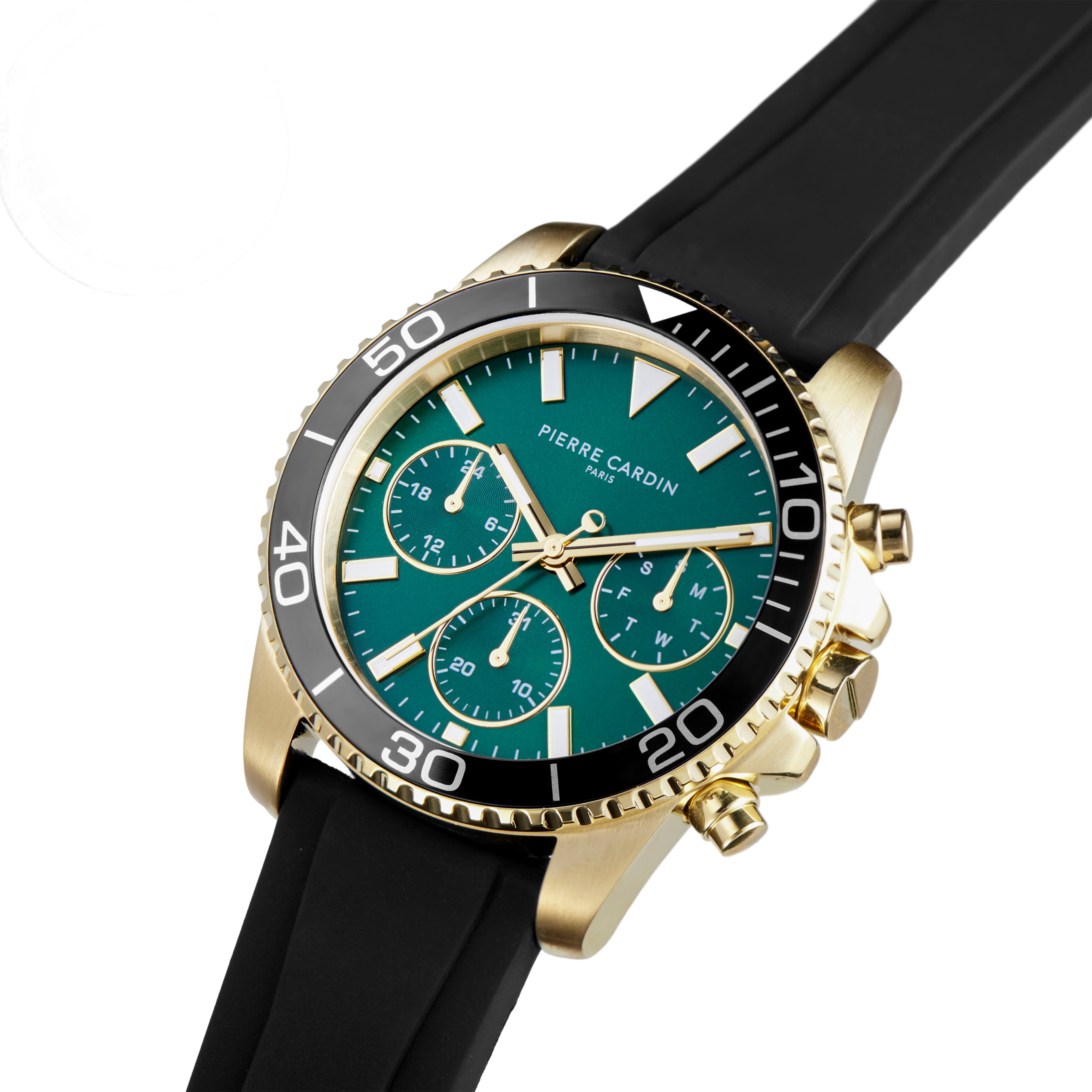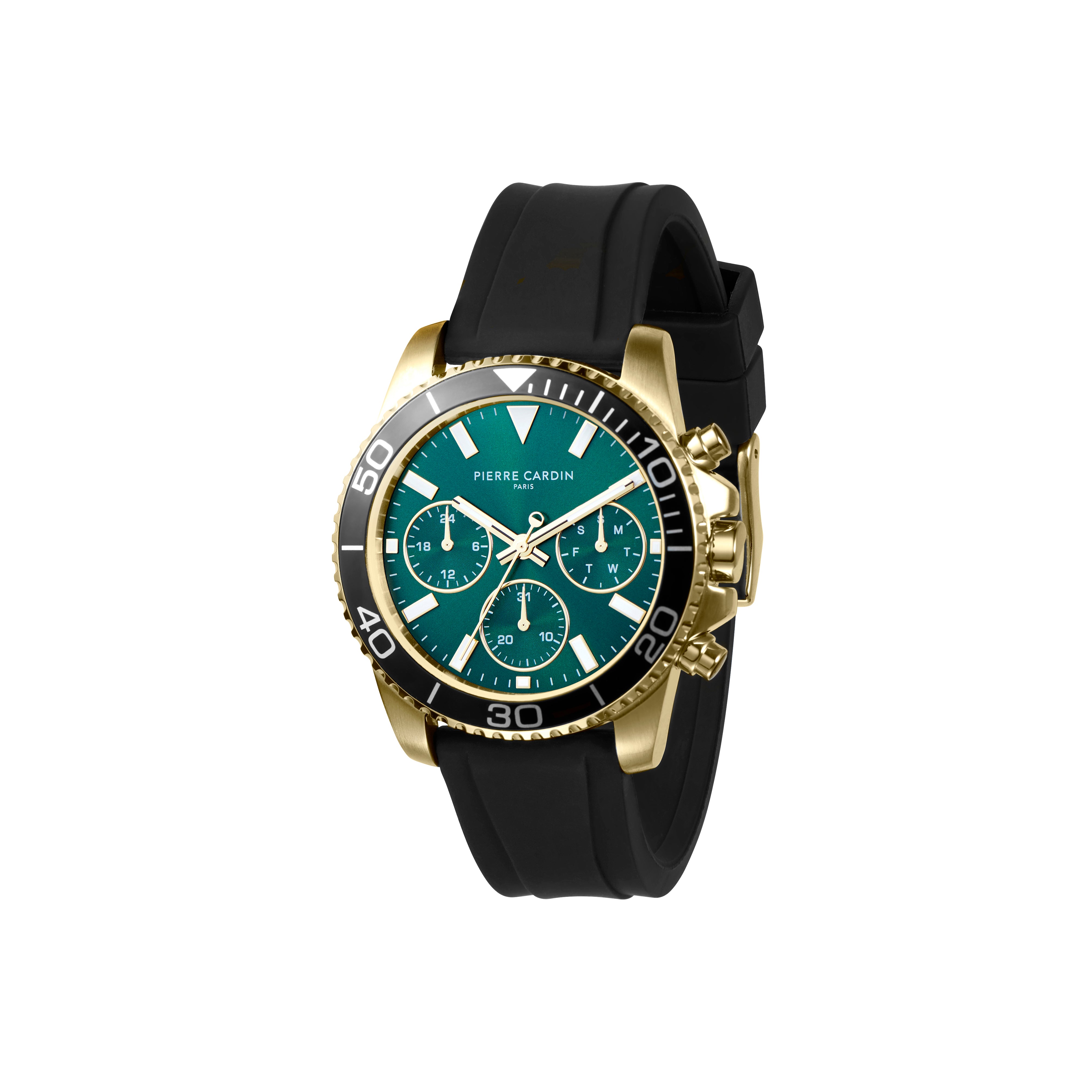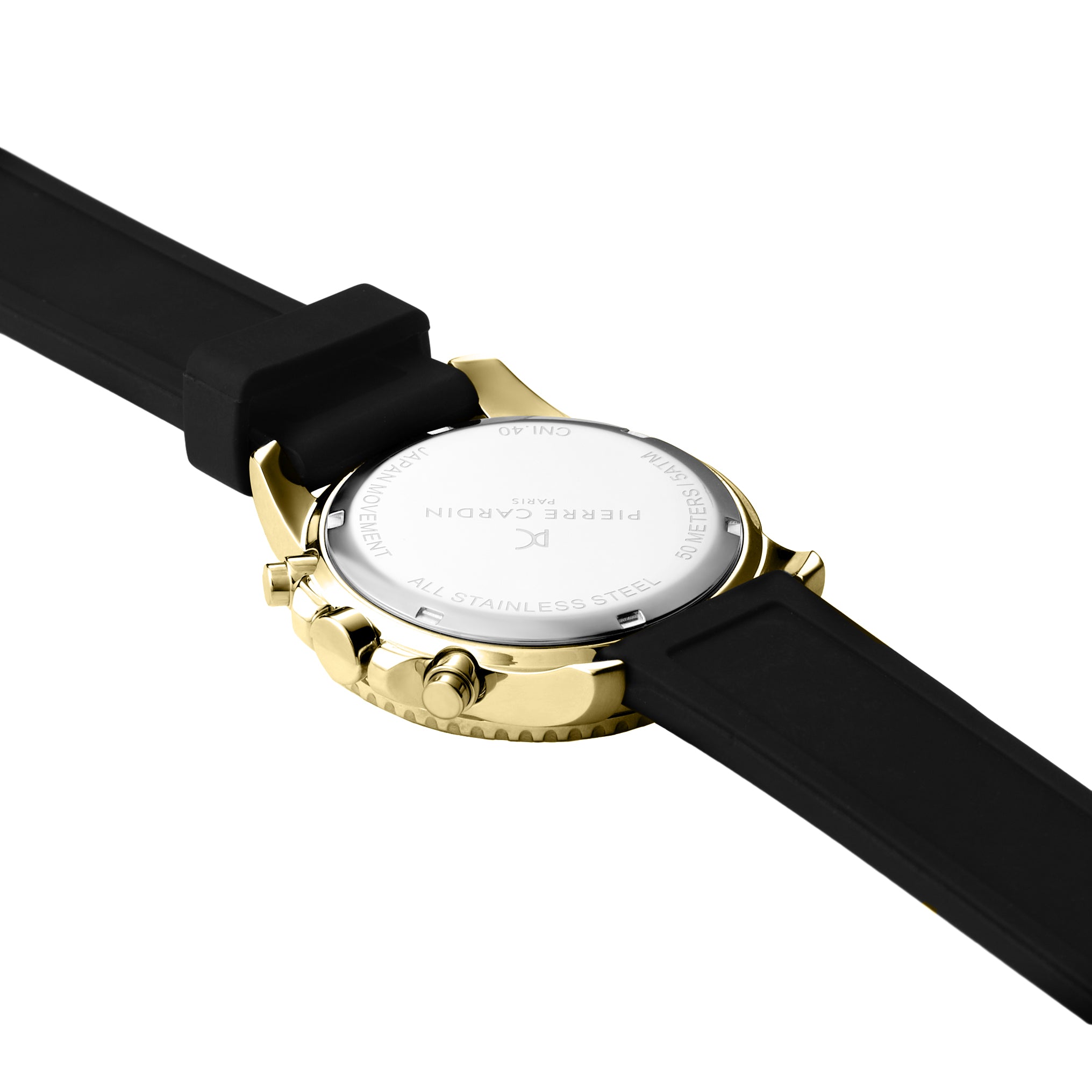 Stay on time in style with the Pierre Cardin Nation Posh Multifunction watch. Featuring a gold case and a sporty black rubber strap, this multifunction watch provides all the features you need for everyday wear. With its sleek, modern design, you can look good and stay punctual.