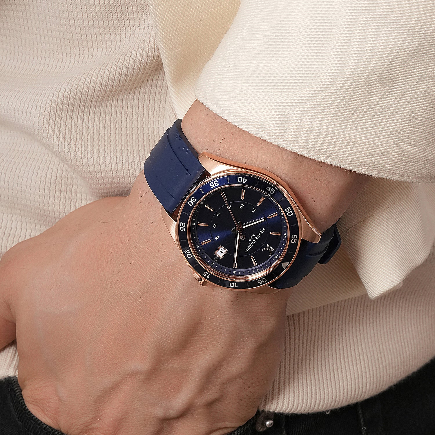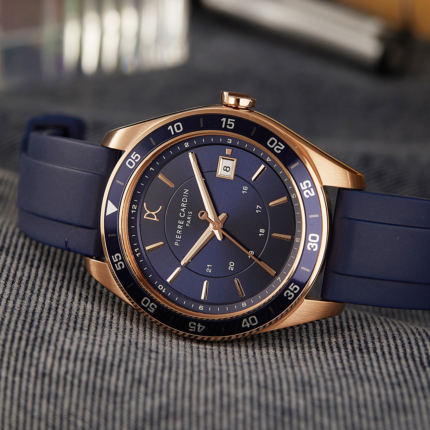 The Nation Verre men’s watch is a striking blend of luxury and sporty style, featuring a unique rose gold 42mm case paired with a deep blue dial and matching blue bezel. Complemented by a comfortable blue silicone strap, this timepiece offers a bold color combination that stands out. Powered by a precise 3-hand quartz movement with a date display, it combines functionality with refined aesthetics. Ideal for those who appreciate modern design with a touch of elegance, the Nation Verre watch is perfect for any occasion, from active adventures to everyday wear.