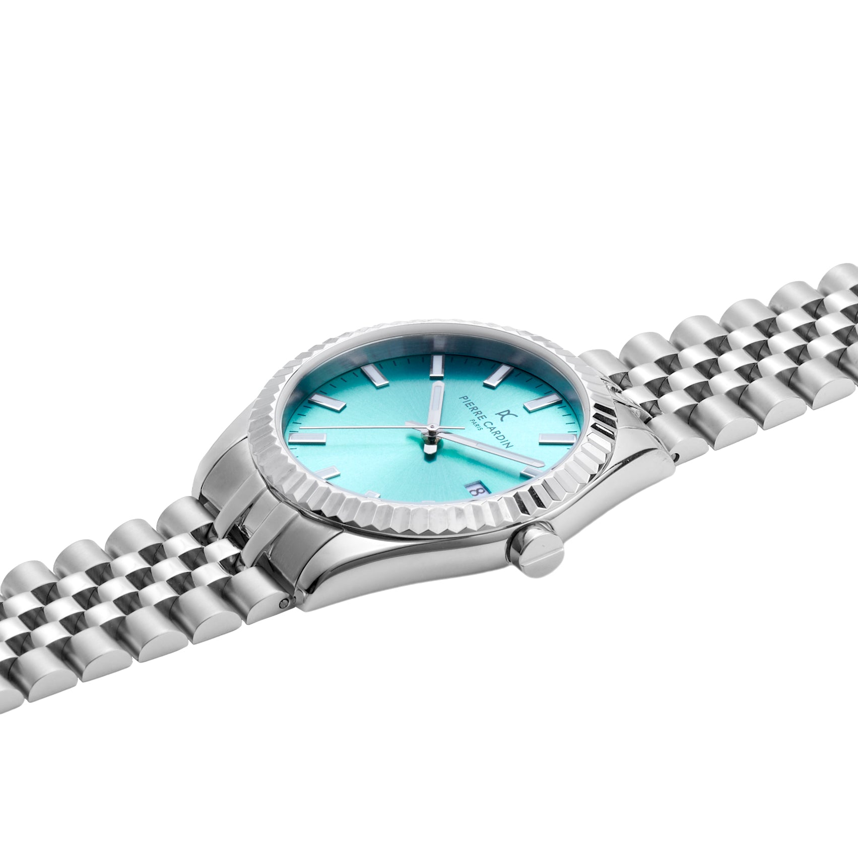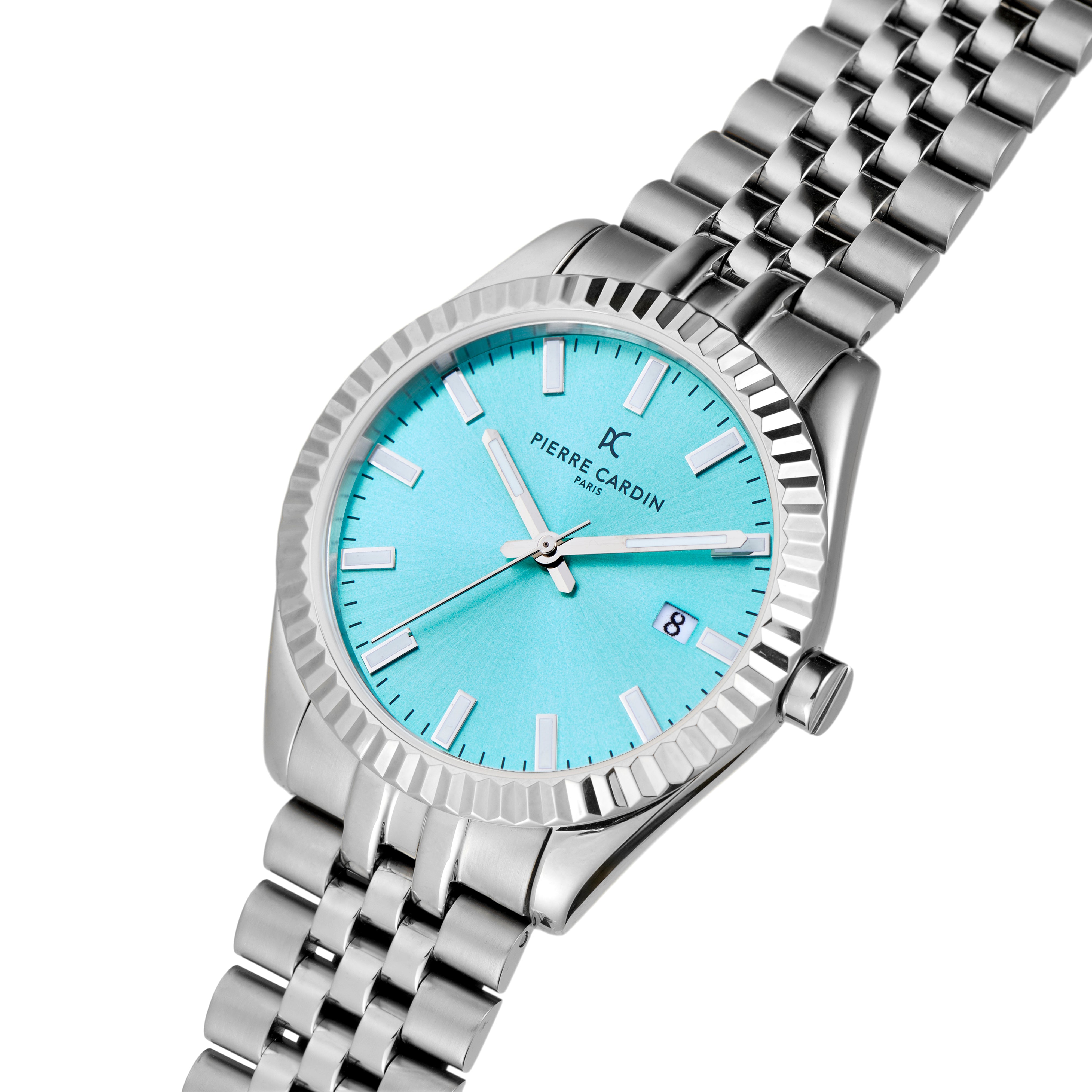 Just like the elegant Opera region of Paris which is known for its theaters, this Pierre Cardin watch is elegant and mesmerising. The fluted bezel adds a touch of luxury, this beautiful watch is made in stainless steel with Tiffany blue dial. The watch also features a date function, The flawless stainless steel watch case lends a delicate and matching stainless steel metal link watch strap adds an additional hint of classic luxury.