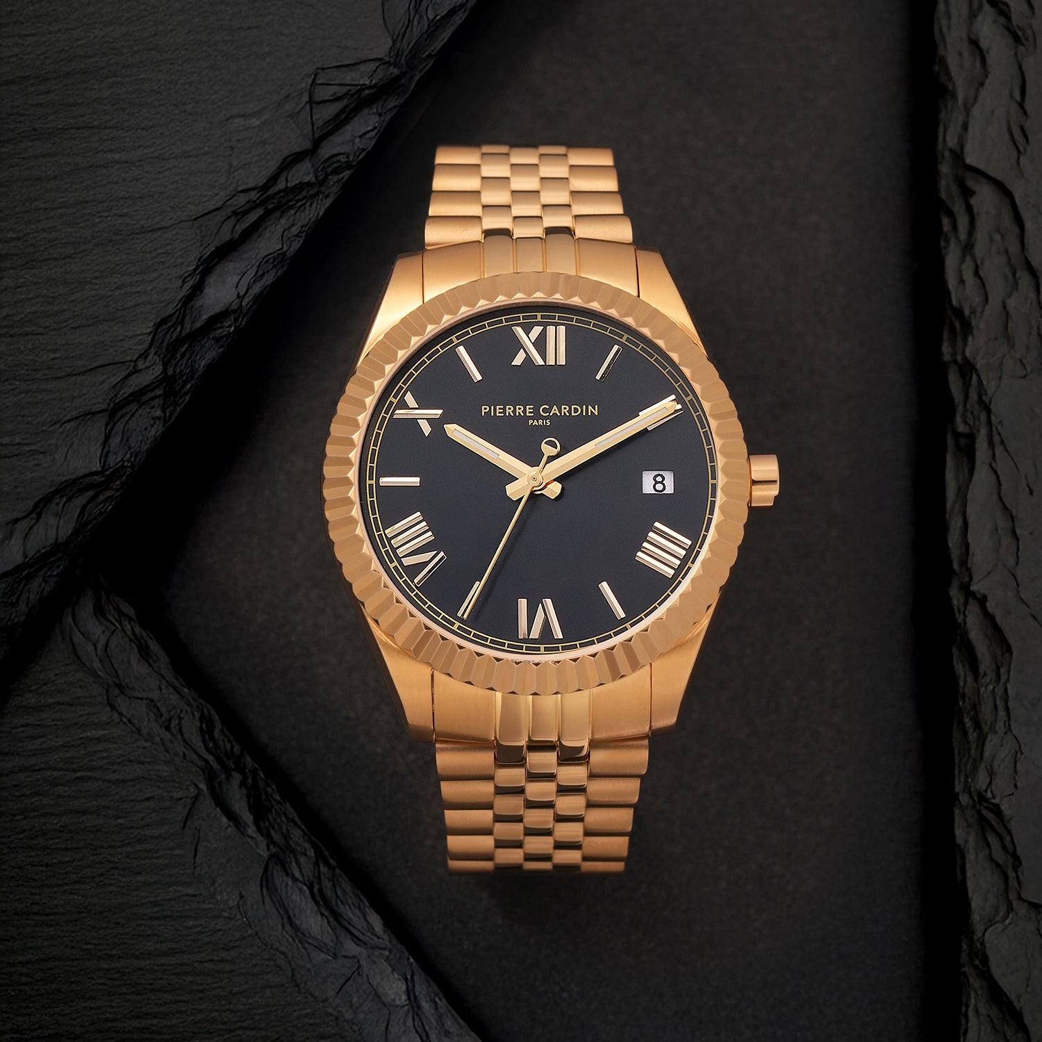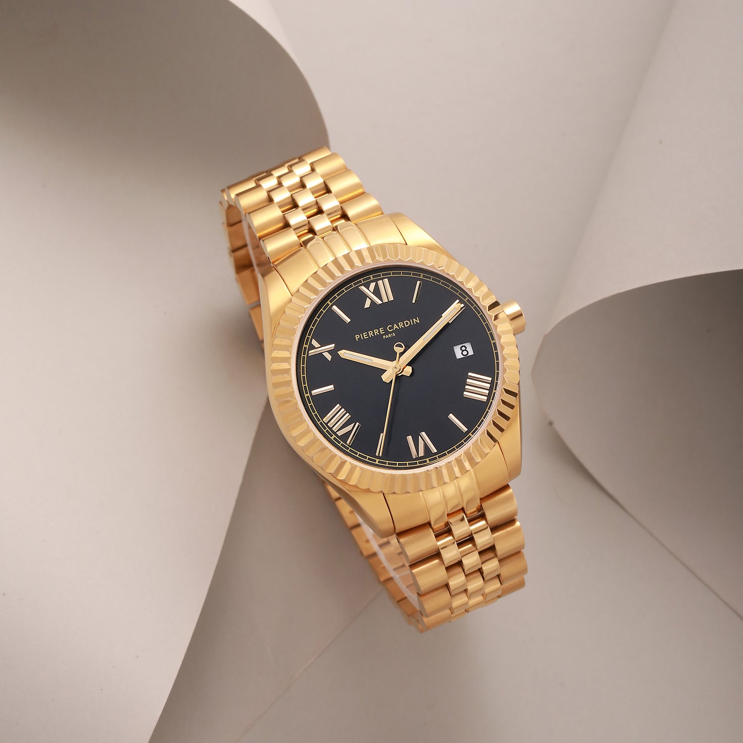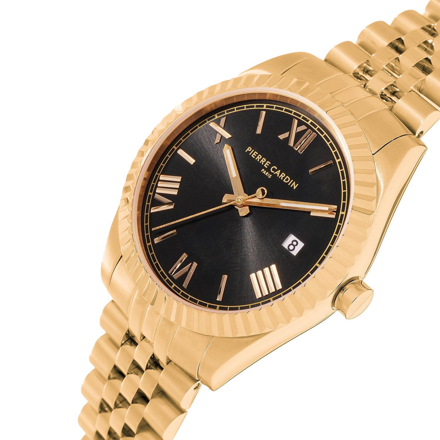 Discover the style and precision of the Opéra Timbre Men's watch. This 40mm timepiece features a Black dial powered by a Quartz movement from Japan. Encased in Gold with a Gold Metal Strap, it blends durability with refined elegance. Perfect for those who appreciate craftsmanship and everyday versatility, this watch is a modern statement piece that balances functionality and timeless appeal.