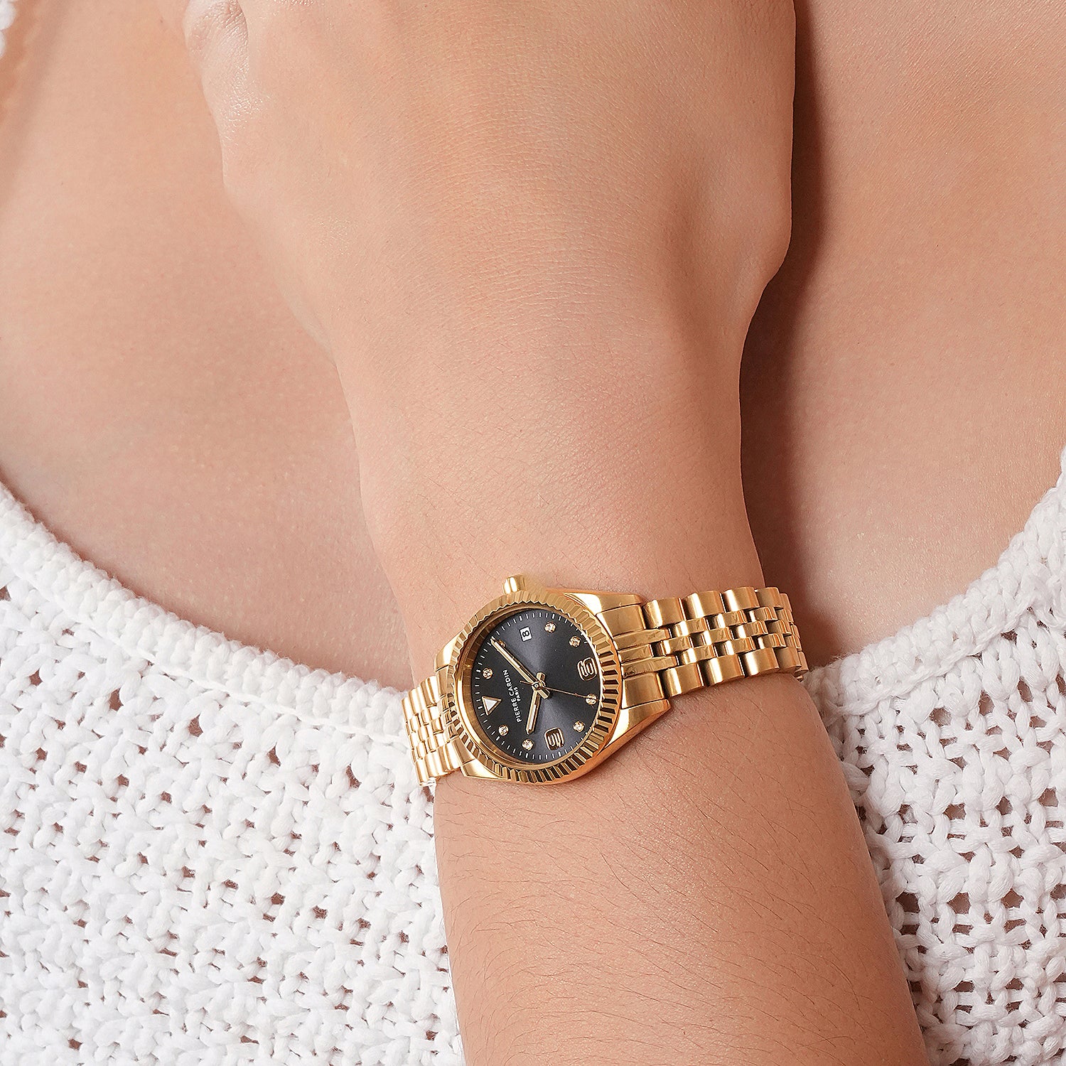 Opéra Timbre Women’s Watch - Gold Case, Black Dial with Crystal Indexes and Gold Jubilee Strap
