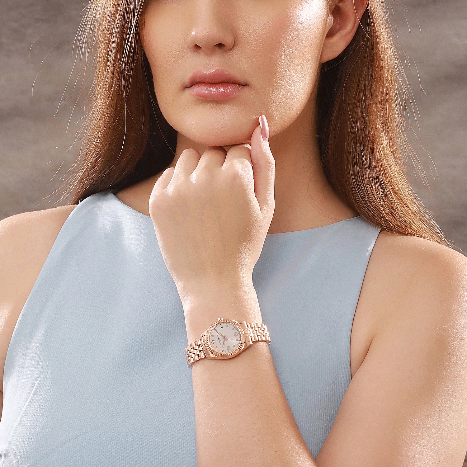 Opéra Timbre Women’s Watch - Rose Gold Case, Champagne Dial with Crystal Indexes and Rose Gold Jubilee Strap
