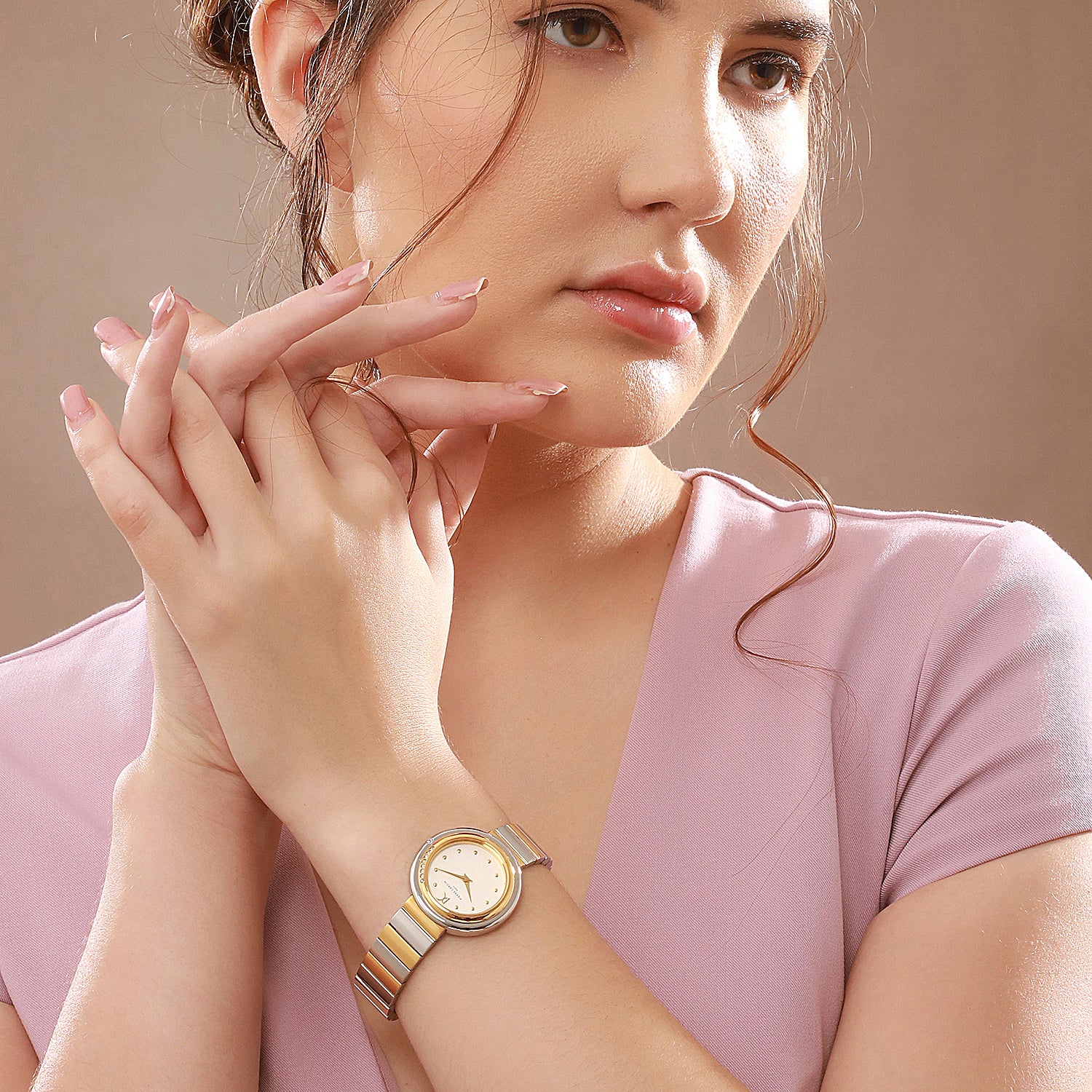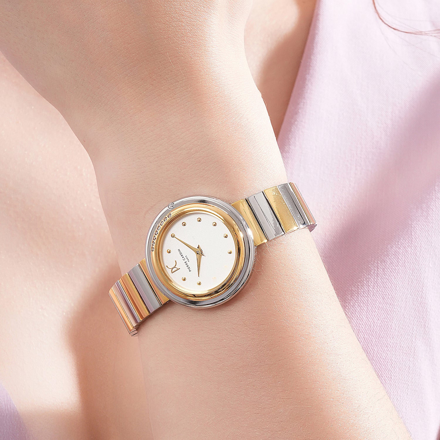 Passy Météore Ladies’ Watch - Two-Tone Gold & Silver Case with Silver White Dial, Crystal Bezel, and Metal Link Strap