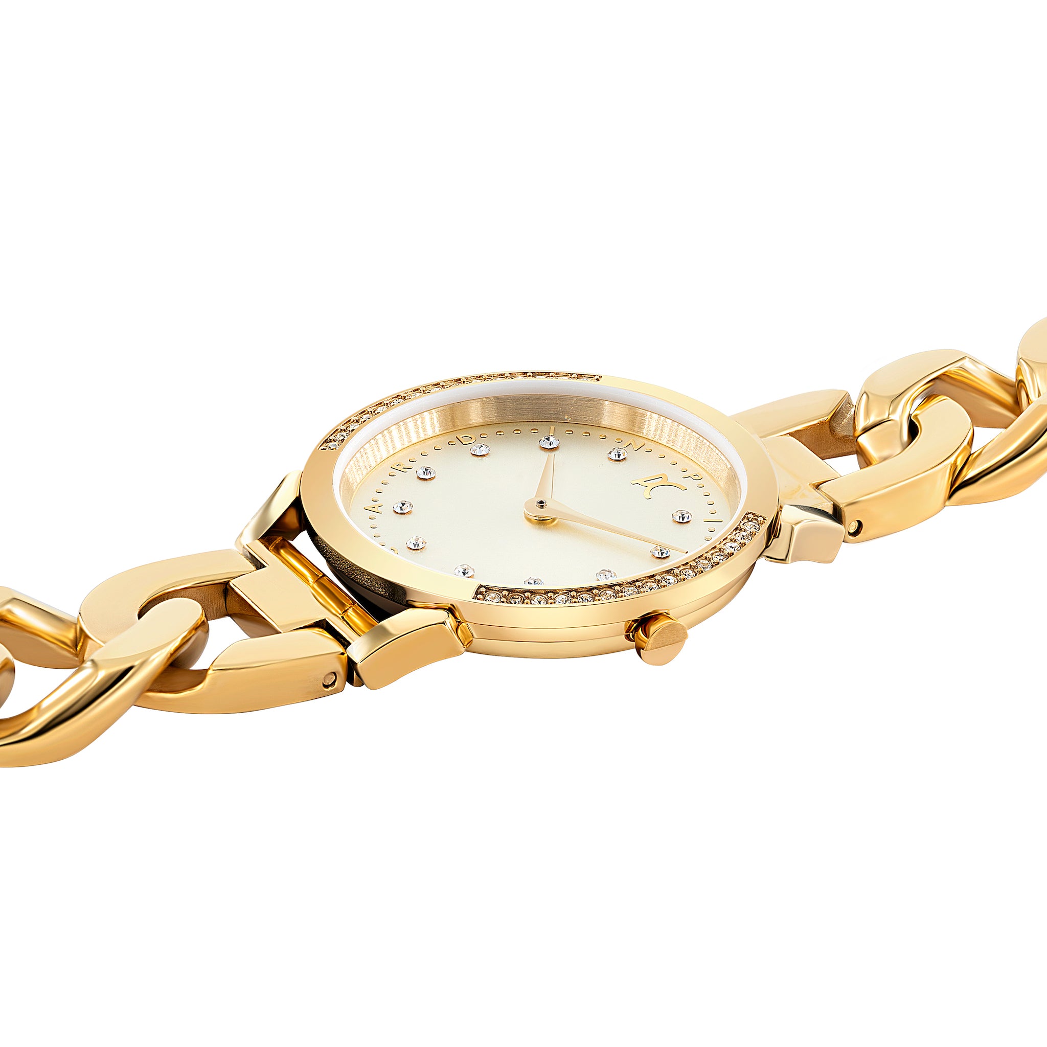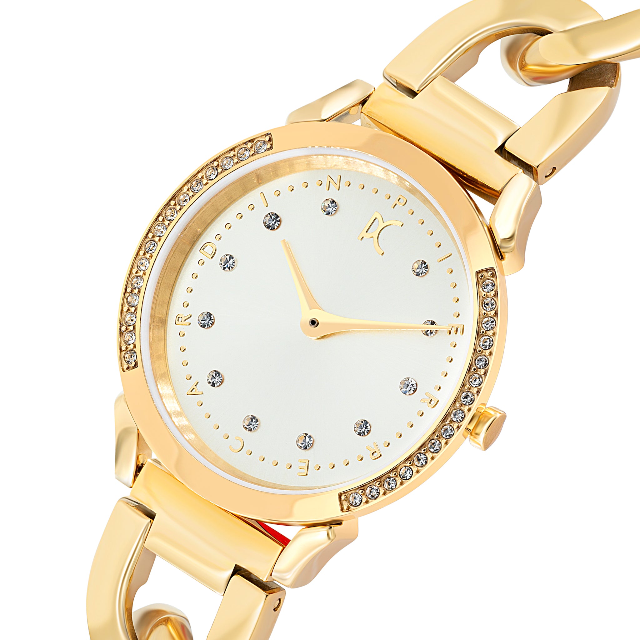 Pigalle Gold Watch with Crystals and Metal Chain Link Strap